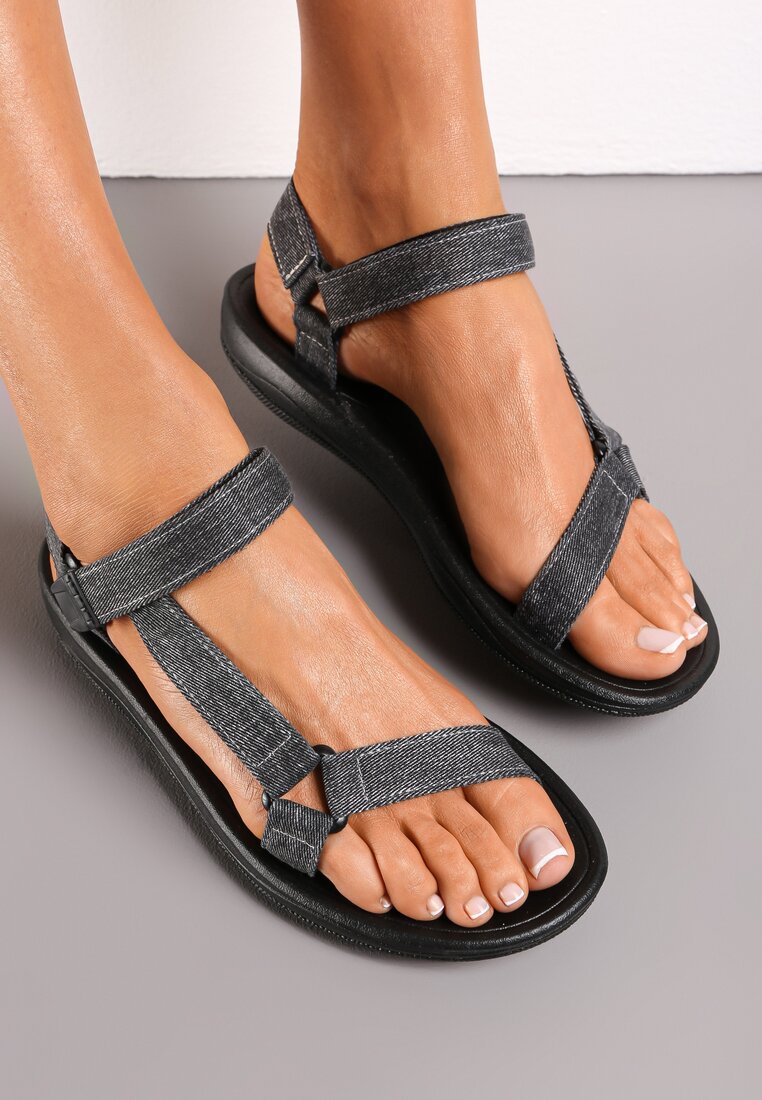 Sandale Negre cu Baretă cu Velcro Lorarand