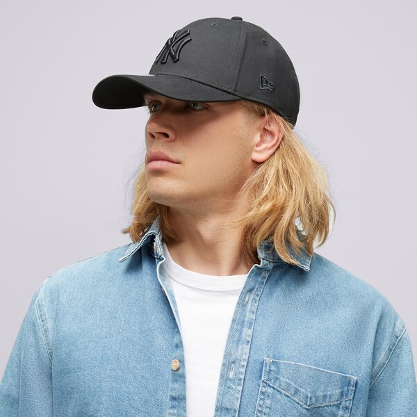 NEW ERA Șapcă de baseball gri/negru, textil, cozoroc curbat, imprimeu cu logo, petic cu logo, logo brodat