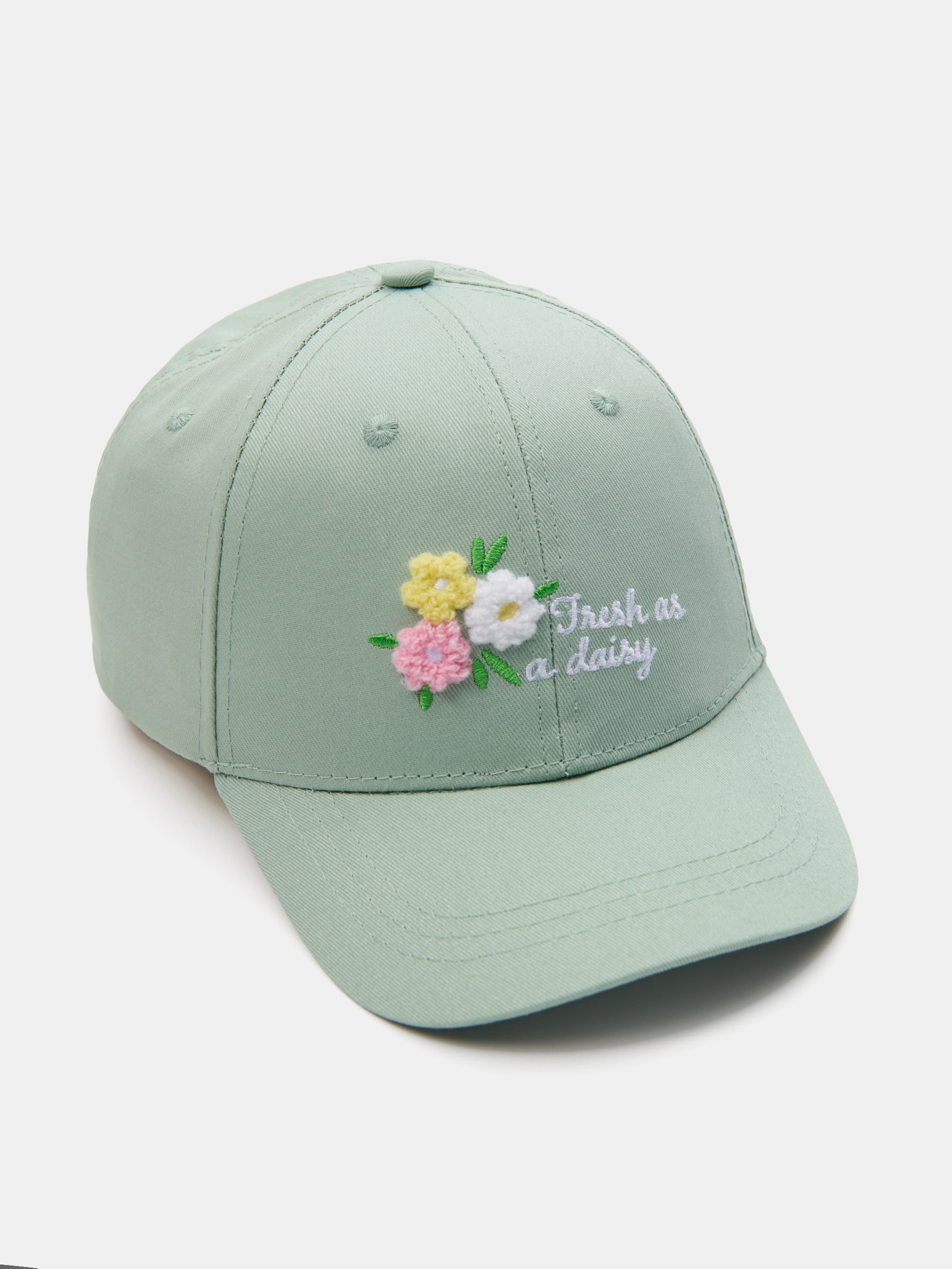 Sinsay - Șapcă cu cozoroc și inscripție brodată Fresh as a daisy - turcoaz-pal