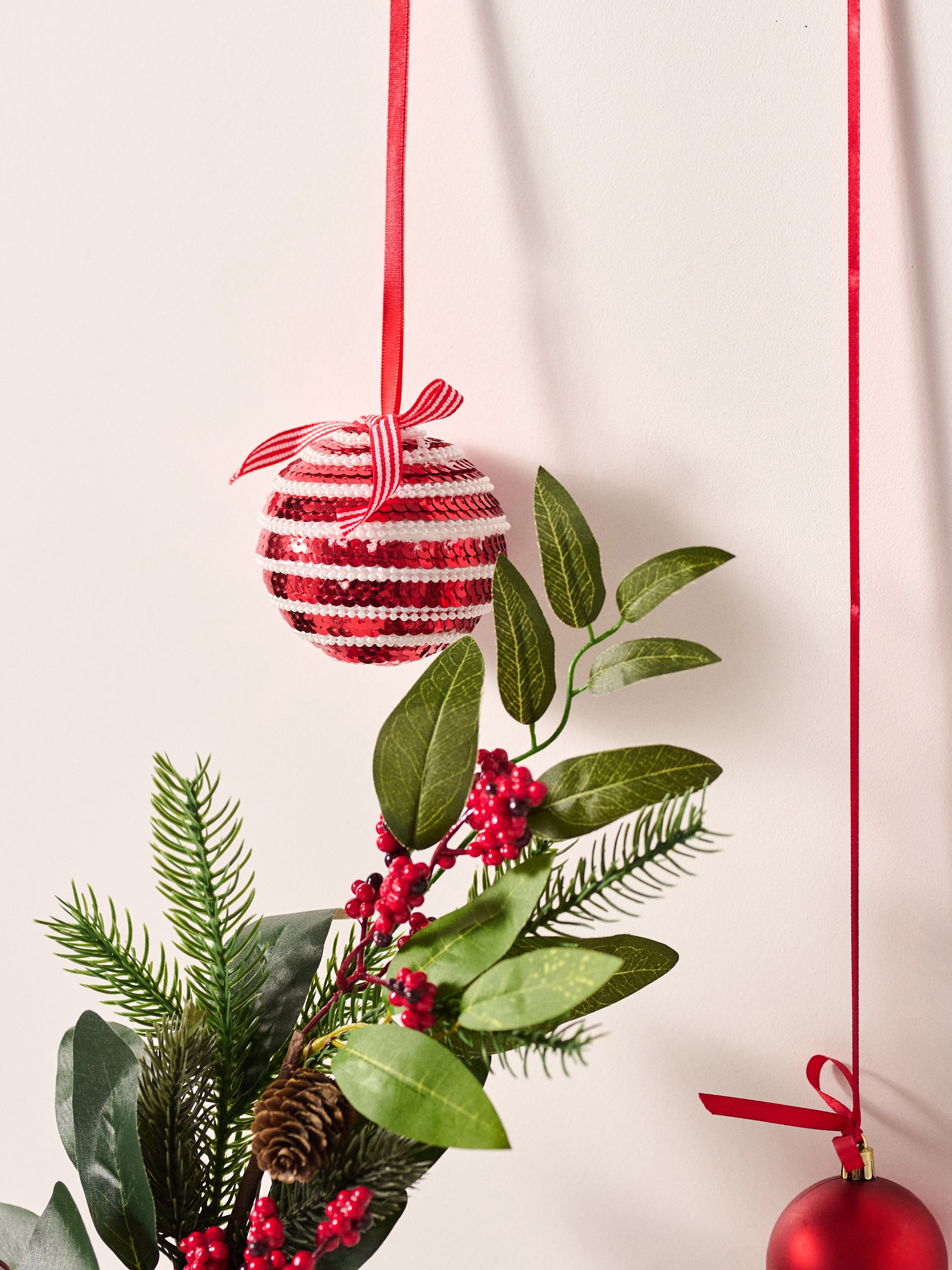 Sinsay - Globuri de Crăciun decorate cu paiete, set de 6 bucăți - roșu