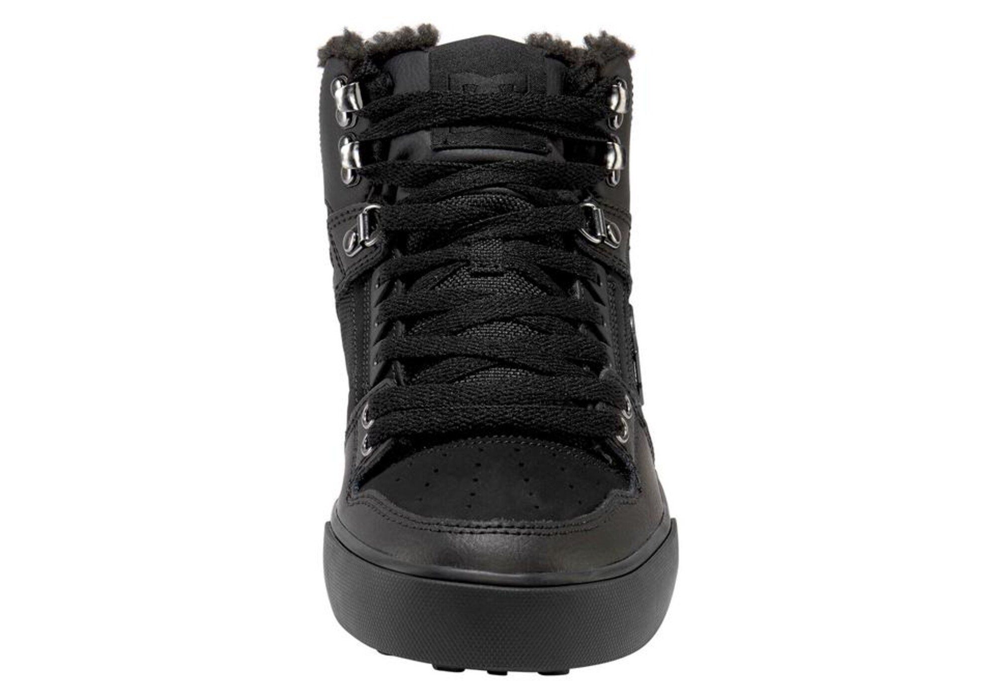 DC Shoes Sneaker înalt din piele neagră, închidere cu șireturi, talpă profilată, călcâi întărit, gleznă căptușită, perforații, ochiuri de alpinism