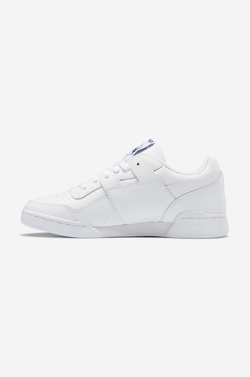 Reebok Classic pantofi sport Workout Plus alb, talpă EVA ușoară, vârf rotund, spate rigidizat, interior textil, șireturi, talpă din gumă