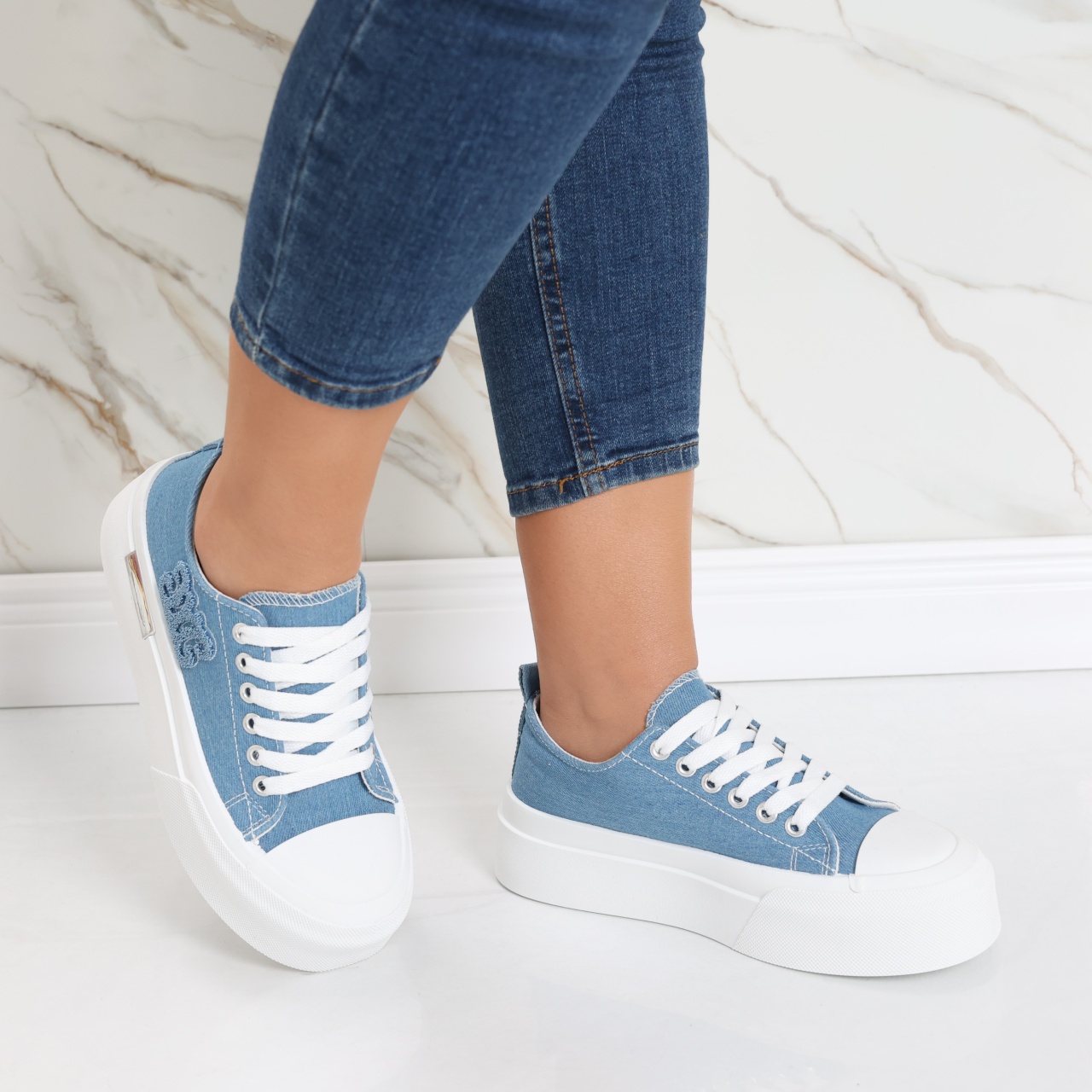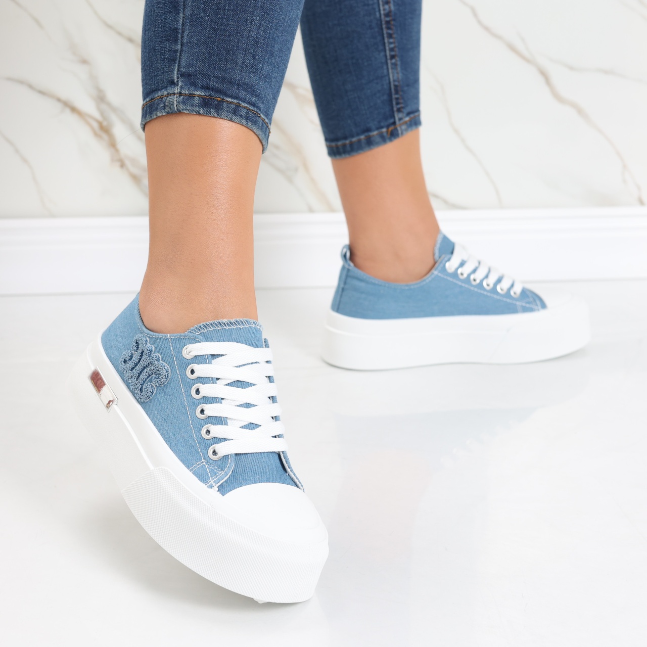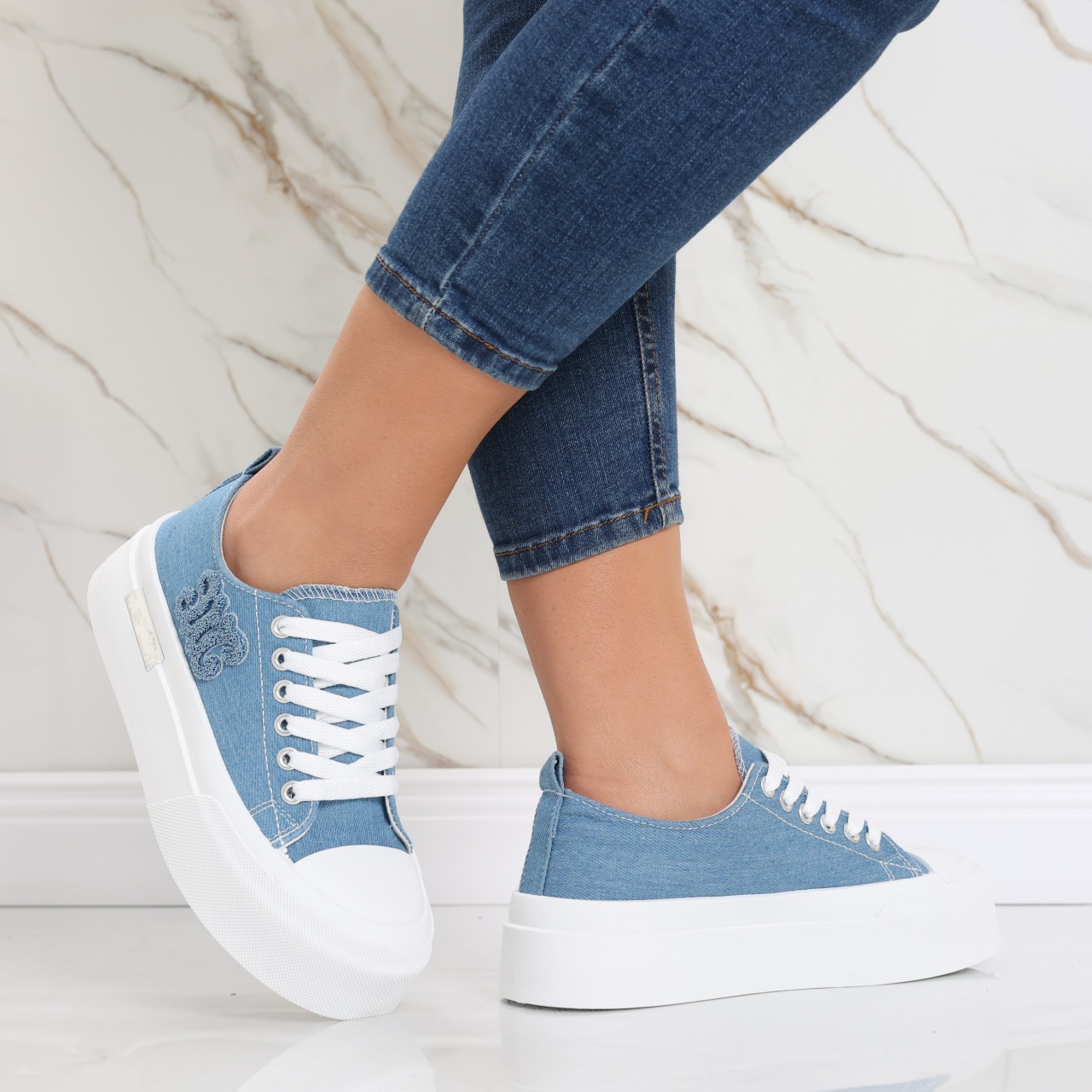 Bucură-te de stilul distinctiv și confortul excepțional oferit de Sneakers Carrie , parte din colecția de adidași pentru femei de la Rora . Cu un design trendy și o înălțime a talpei de 4.5 cm, acești sneakers bleumarin sunt alegerea perfectă pentru femeile moderne care își doresc un look unic și plin de personalitate. Construiți din material textil de înaltă calitate, acești sneakers Carrie oferă o combinație perfectă între eleganță și funcționalitate. Culoarea bleumarin adaugă un strop de rafinament, iar materialul textil asigură respirabilitate și confort, indiferent de activitatea zilnică. Carrie se remarcă prin versatilitatea sa, potrivindu-se perfect atât ținutelor casual, cât și celor sport. Cu un branding discret al brandului Rora, acești sneakers reprezintă alegerea ideală pentru femeile care apreciază atât moda, cât și confortul. Indiferent dacă te pregătești pentru o plimbare în oraș sau pentru o sesiune de antrenament, Sneakers Carrie te vor însoți cu stil. Descoperă plăcerea de a îmbina moda cu funcționalitatea și adaugă o pereche de sneakers în garderoba ta pentru a completa perfect orice ținută casual sau sport.