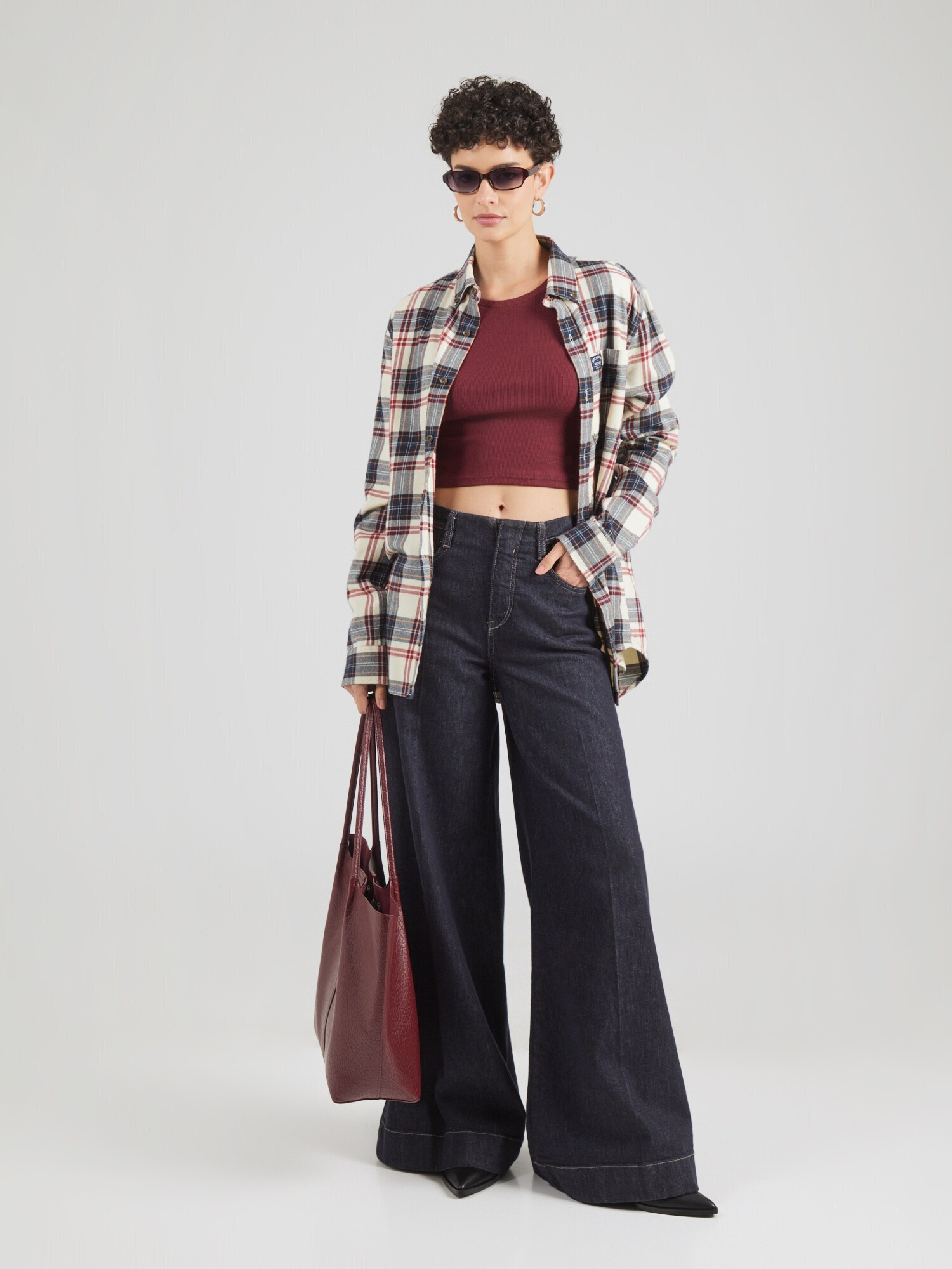 ABOUT YOU Tricou Loretta bej deschis / albastru fumuriu / roșu bordeaux
