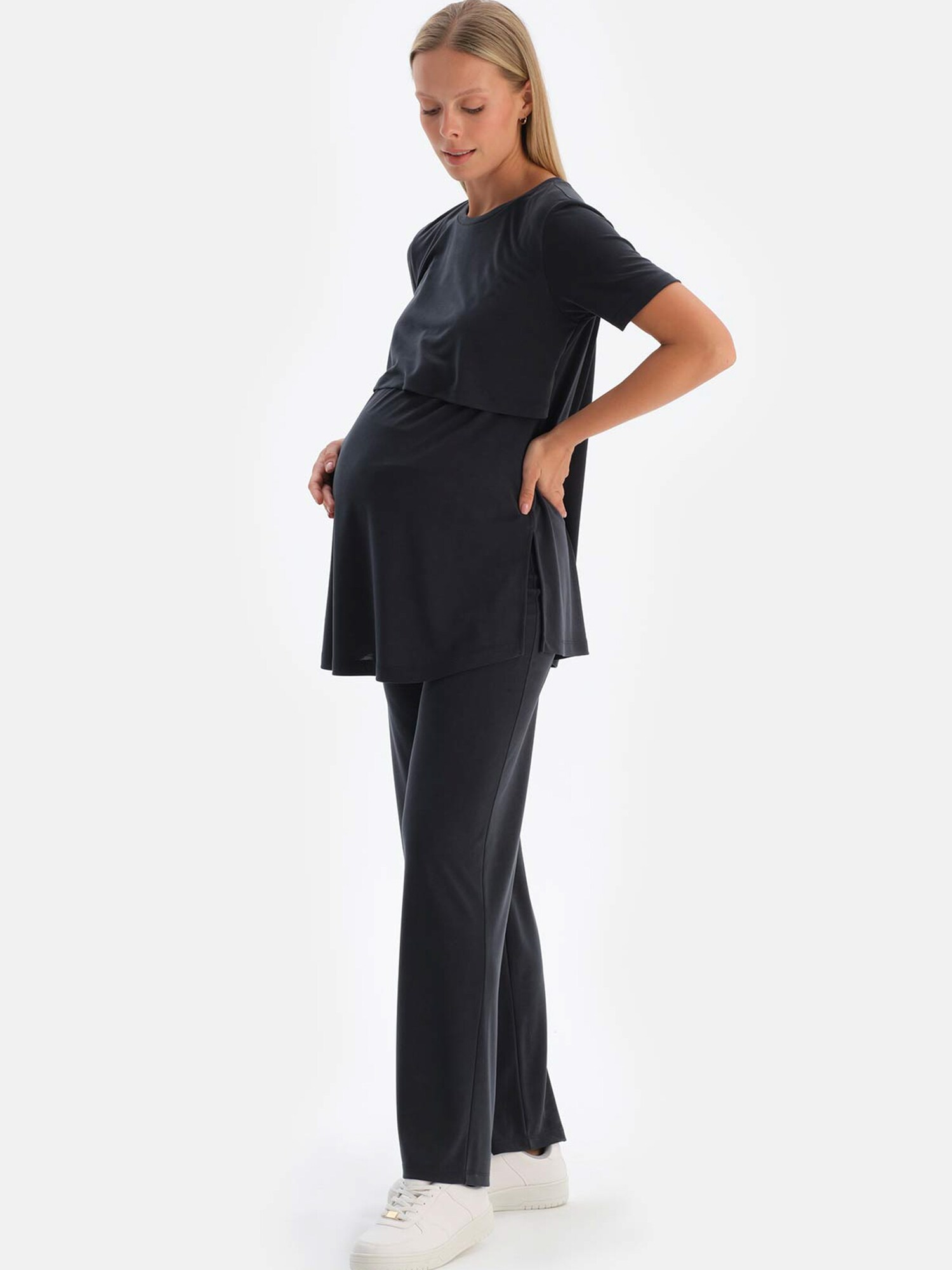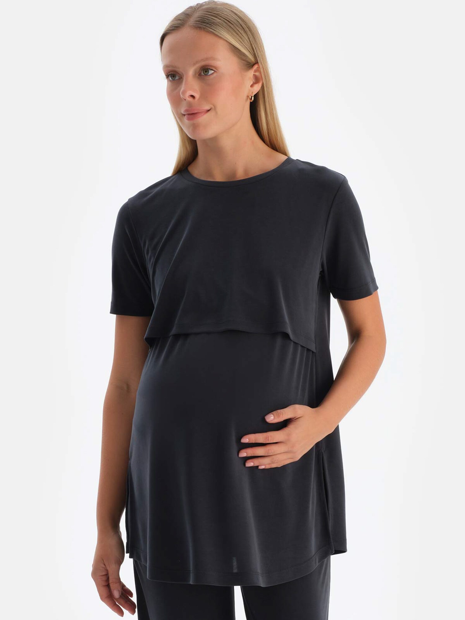 Design: Tiv/ margine tighelită; Material: Jerseu; Decolteu: Decolteu rotund; Imprimeu: Monocrom; Detalii: Material ușor; Funcție de alăptare: Cu funcție de alăptare; Croi: Croi normal; Lungime mâneci: Mâneci scurte; Lungime: Lungime normală