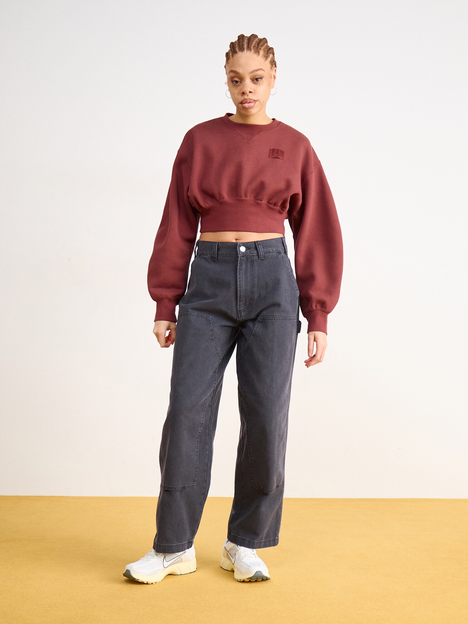 Design: Betelie lată, Guler din tricot cu striații, Tiv drept, Manșete cu striații, Umăr întretăiat; Material: Material sweat; Decolteu: Decolteu rotund; Imprimeu: Monocrom; Detalii: Drapat; Detalii: Petic cu logo, Cusături ton în ton, Material moale; Croi: Croi normal; Lungime mâneci: Mâncecă lungă; Lungime: Croi scurt