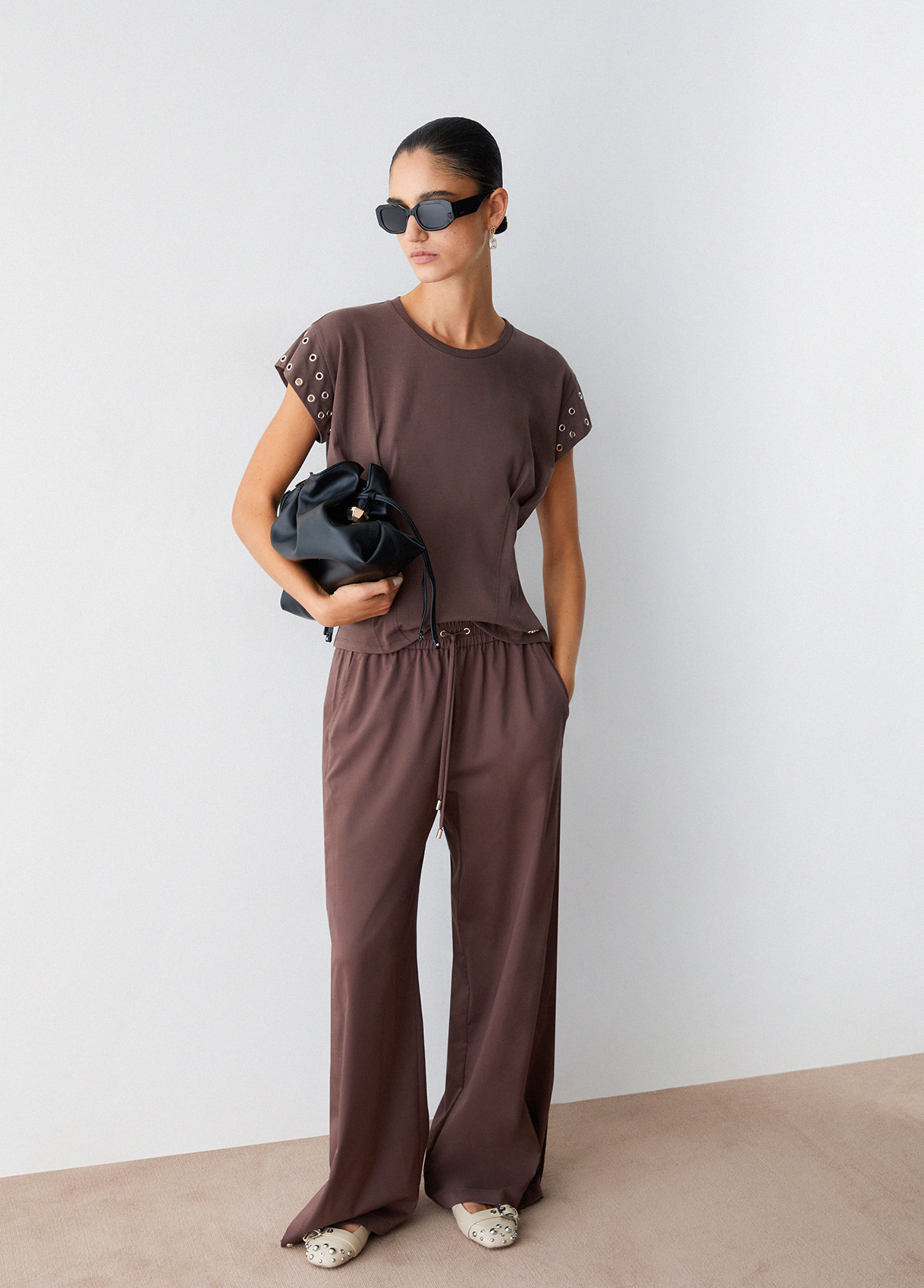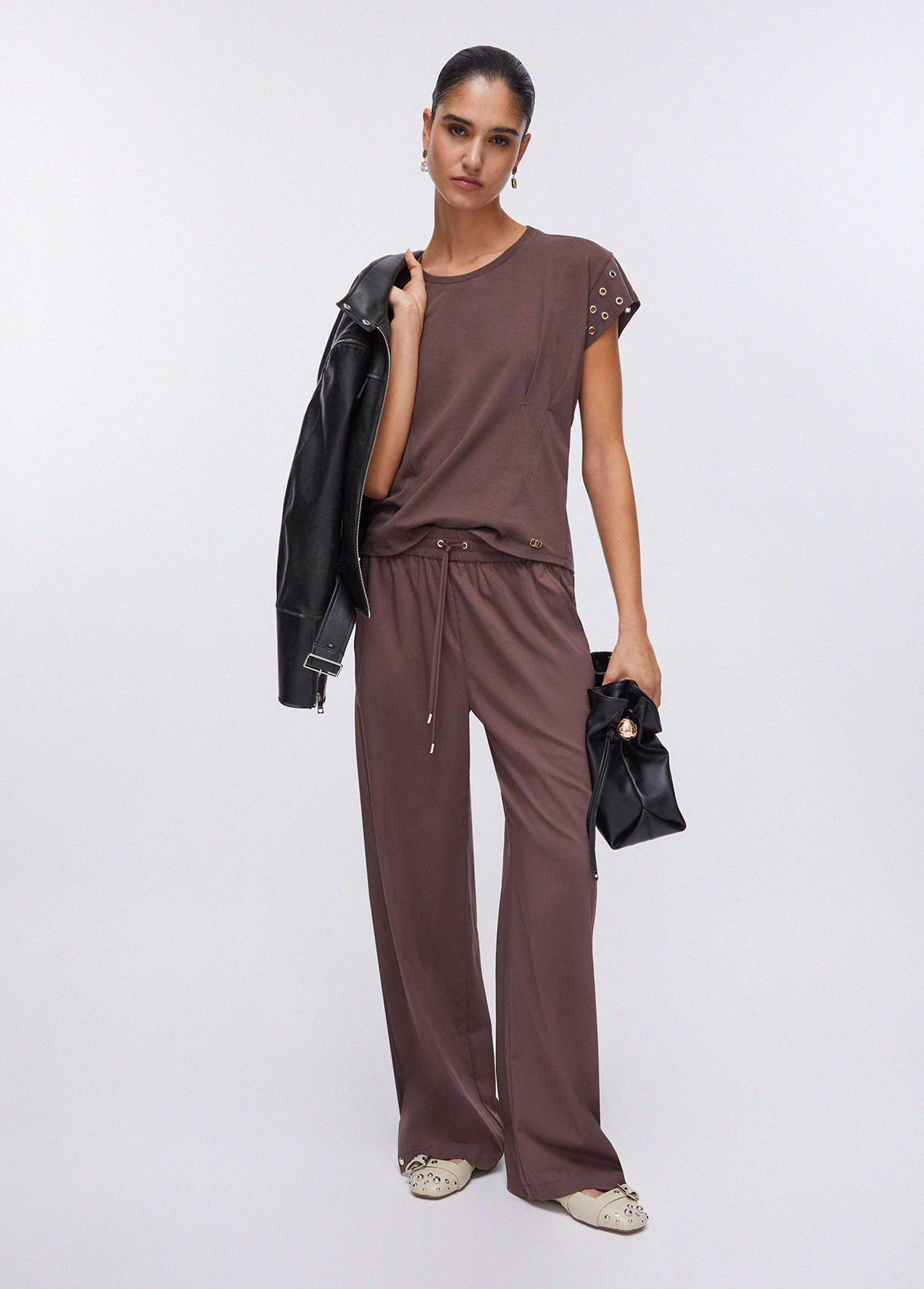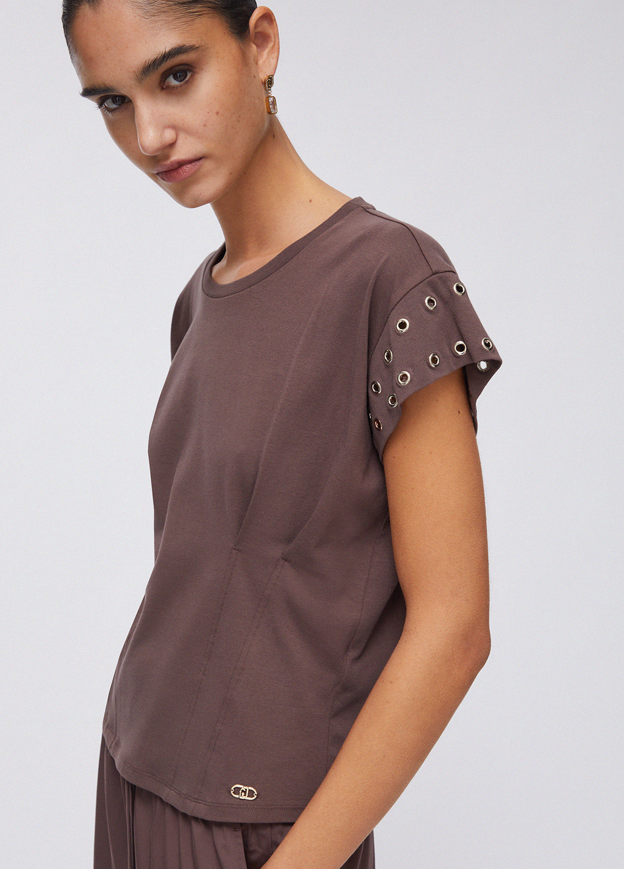Cotton jersey T-shirt Round neck Short sleeves with decorative eyelets Gathering on the waist Liu Jo Better product