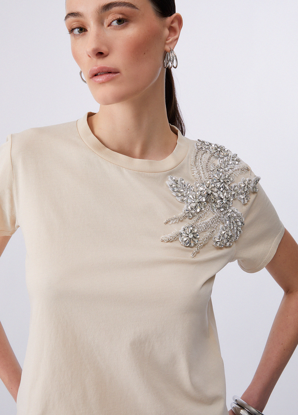 Cotton jersey T-shirt Crew neck Short sleeves Bejewelled embellishment Regular fit Liu Jo Better product