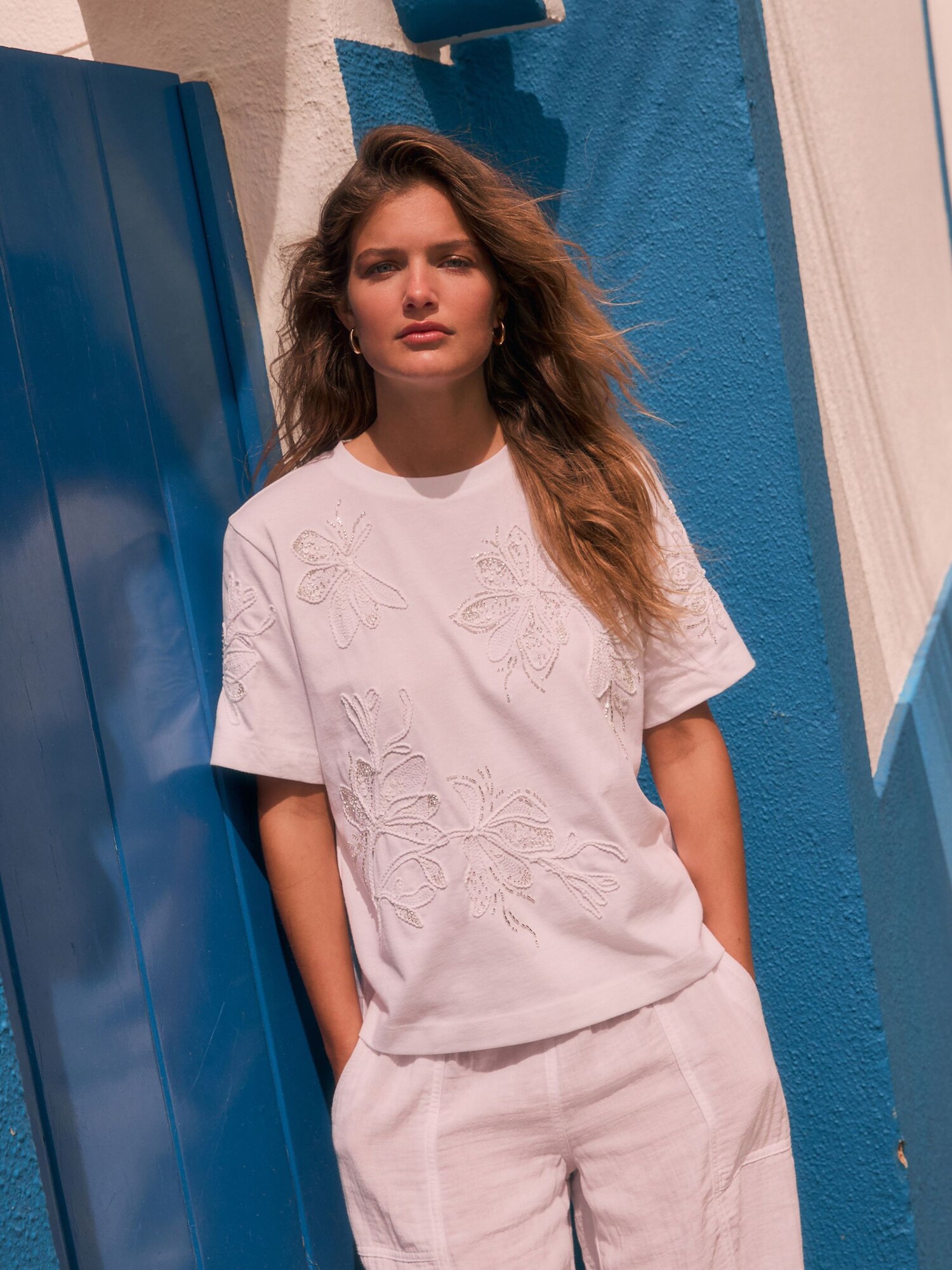 Design: Tiv/ margine tighelită, Guler din tricot cu striații, Necktape; Material: Jerseu; Decolteu: Decolteu rotund; Imprimeu: Cu imprimeu floral; Detalii: Paiete, Broderie, Pietre decorative; Detalii: Aplicații, Material moale; Croi: Croi normal; Lungime mâneci: Mâneci scurte; Lungime: Lungime normală