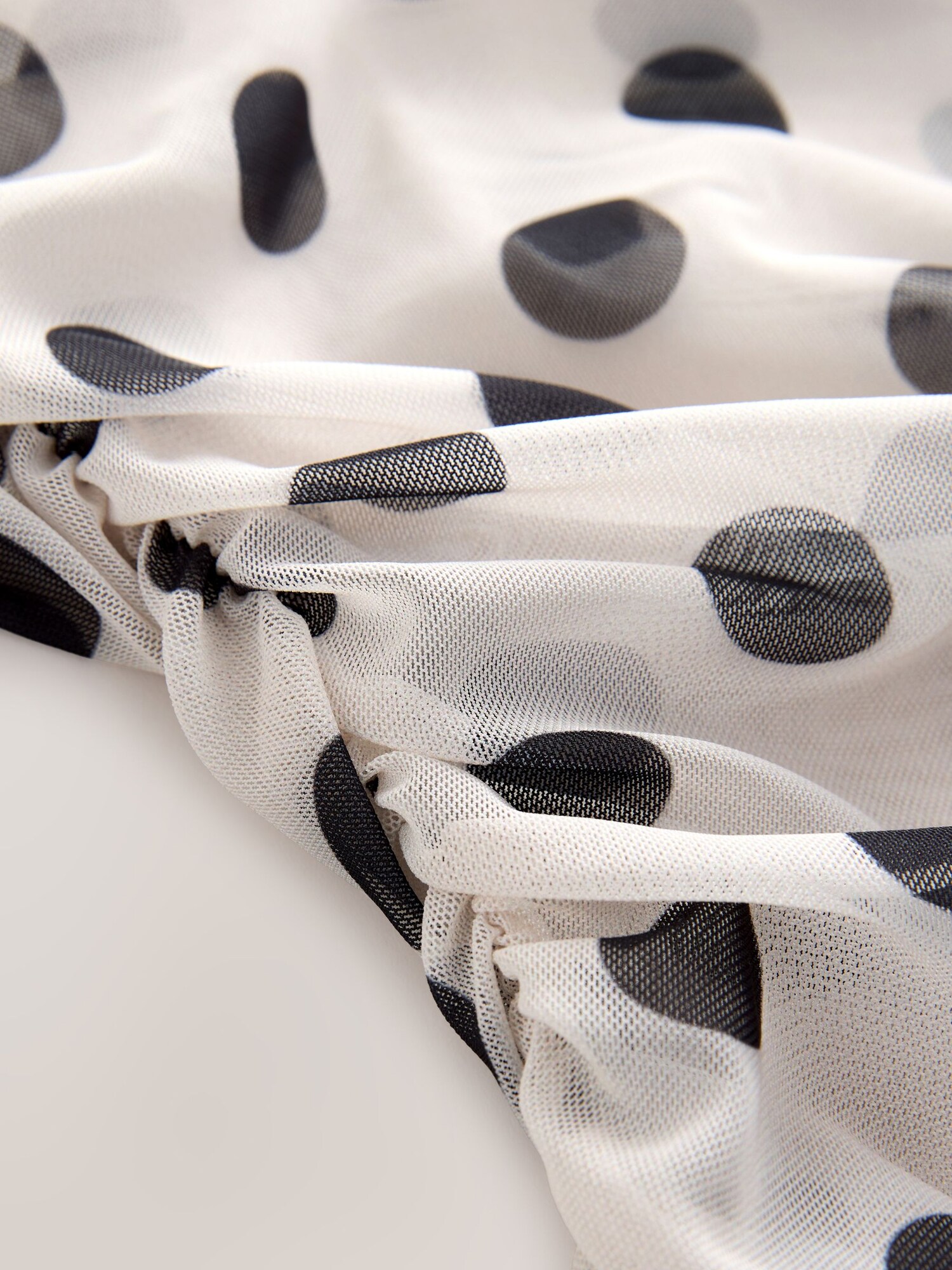 Design: Tiv/ margine tighelită; Material: Material reciclat; Decolteu: Decolteu barcă; Imprimeu: Cu buline; Detalii: Drapat; Detalii: Ușor transparent, Imprimat în totalitate, Fabricat ecologic; Croi: Croi normal; Lungime mâneci: Mâncecă lungă; Lungime: Lungime normală