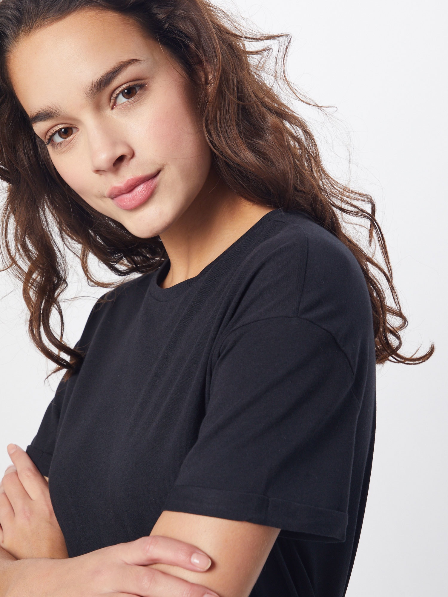 Noisy May Tricou Brandy negru jerseu, guler din tricot cu striații, croi normal, maneci scurte