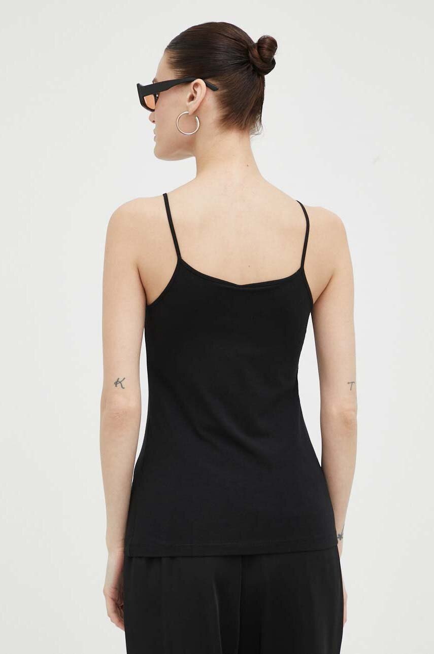 Samsoe Samsoe top femei negru, din bumbac organic certificat, tricot flexibil subtire, fason mulat, decolteu în V, mărime XS sau S