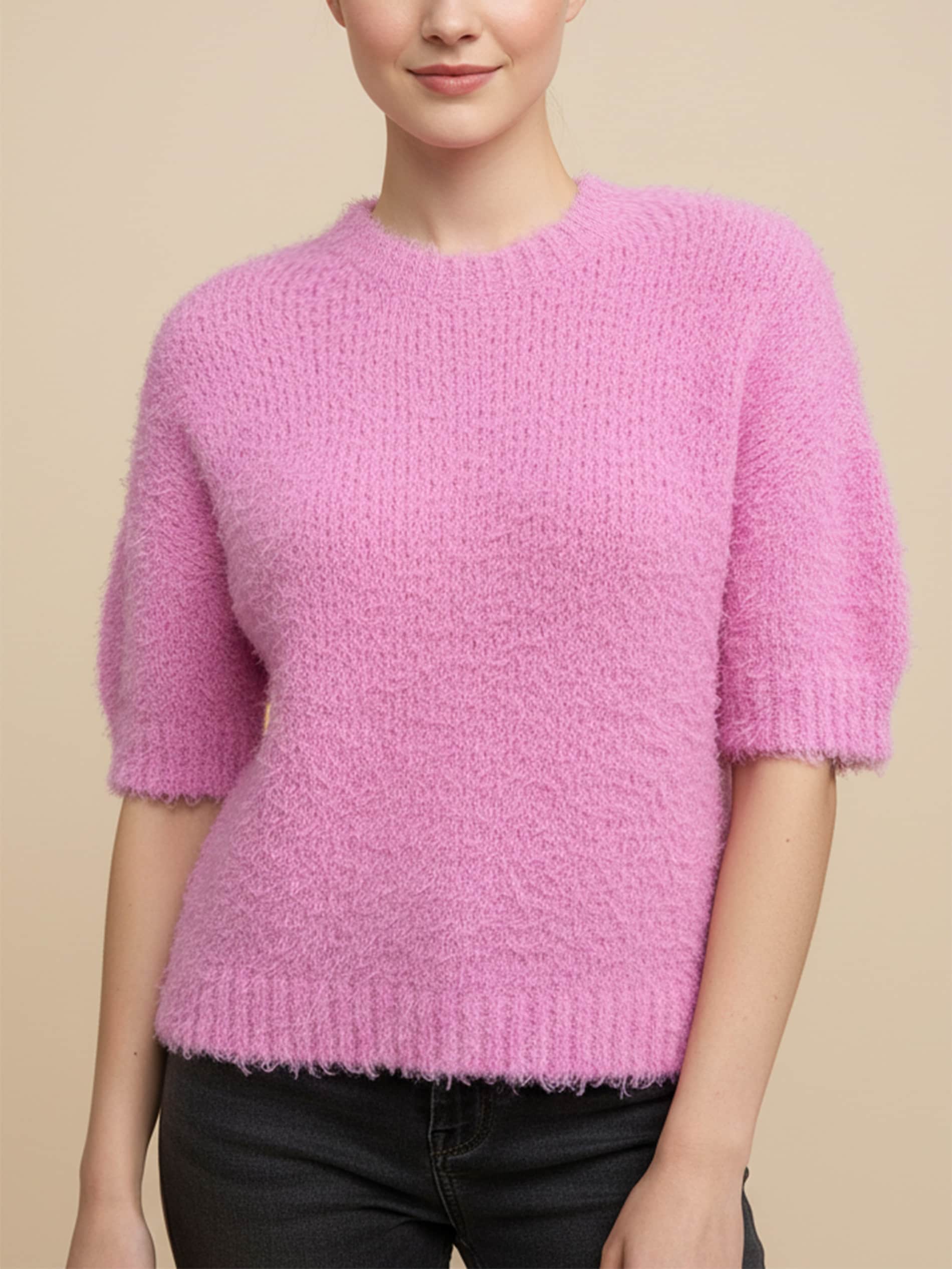 Sinsay - Bluză moale cu mâneci scurte și decolteu rotund - roz