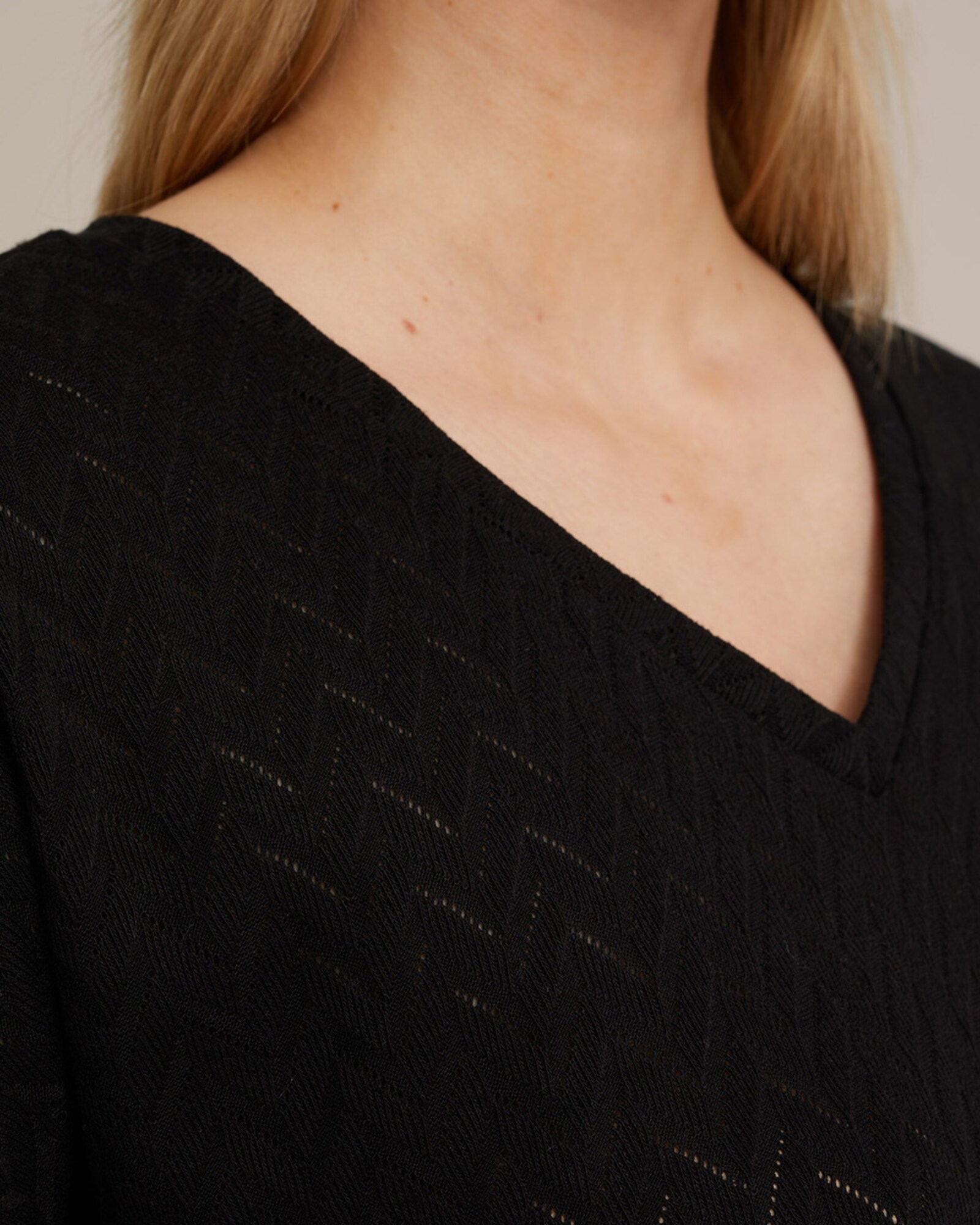 Material: Jerseu; Decolteu: Decolteu în V; Imprimeu: Monocrom; Detalii: Model cu găuri; Croi: Croi normal; Lungime mâneci: Mâneci scurte; Lungime: Lungime normală