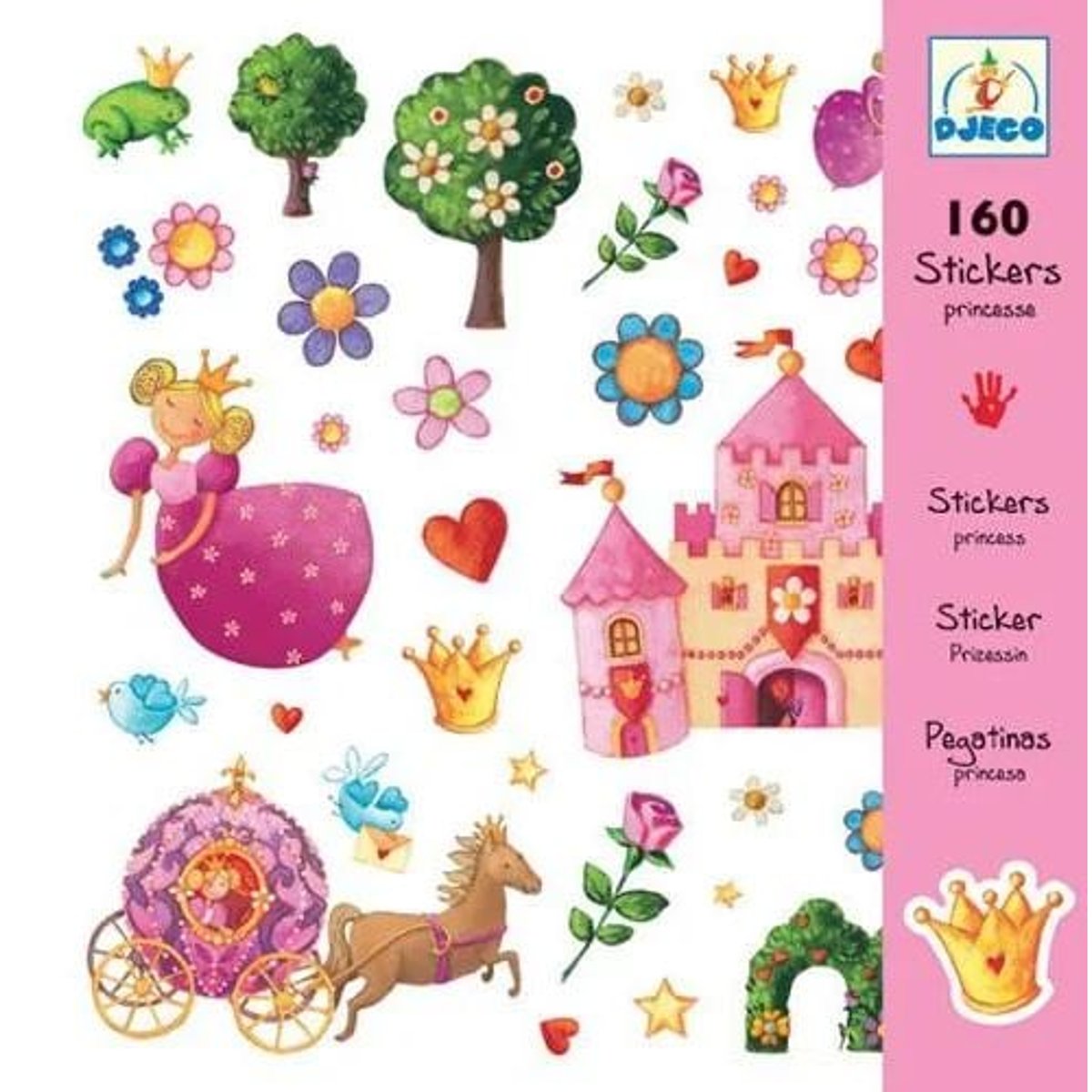 Intra in lumea basmelor si creeaza cu cele 160 de abtibilduri! Printese, coronite, castel, tot ce ai nevoie pentru o poveste de neuitat.Varsta recomandata: 4 - 8 ani.Confectionat din hartie si carton. Conform reglementarilor EN71&ASTM.AVERTISMENT: Contraindicat copiilor sub 4 ani, contine piese mici, pericol de sufocare. A se utiliza sub directa supraveghere a unui adult.Producator: Djeco, FrantaUrmariti instructiunile de pe ambalaj.