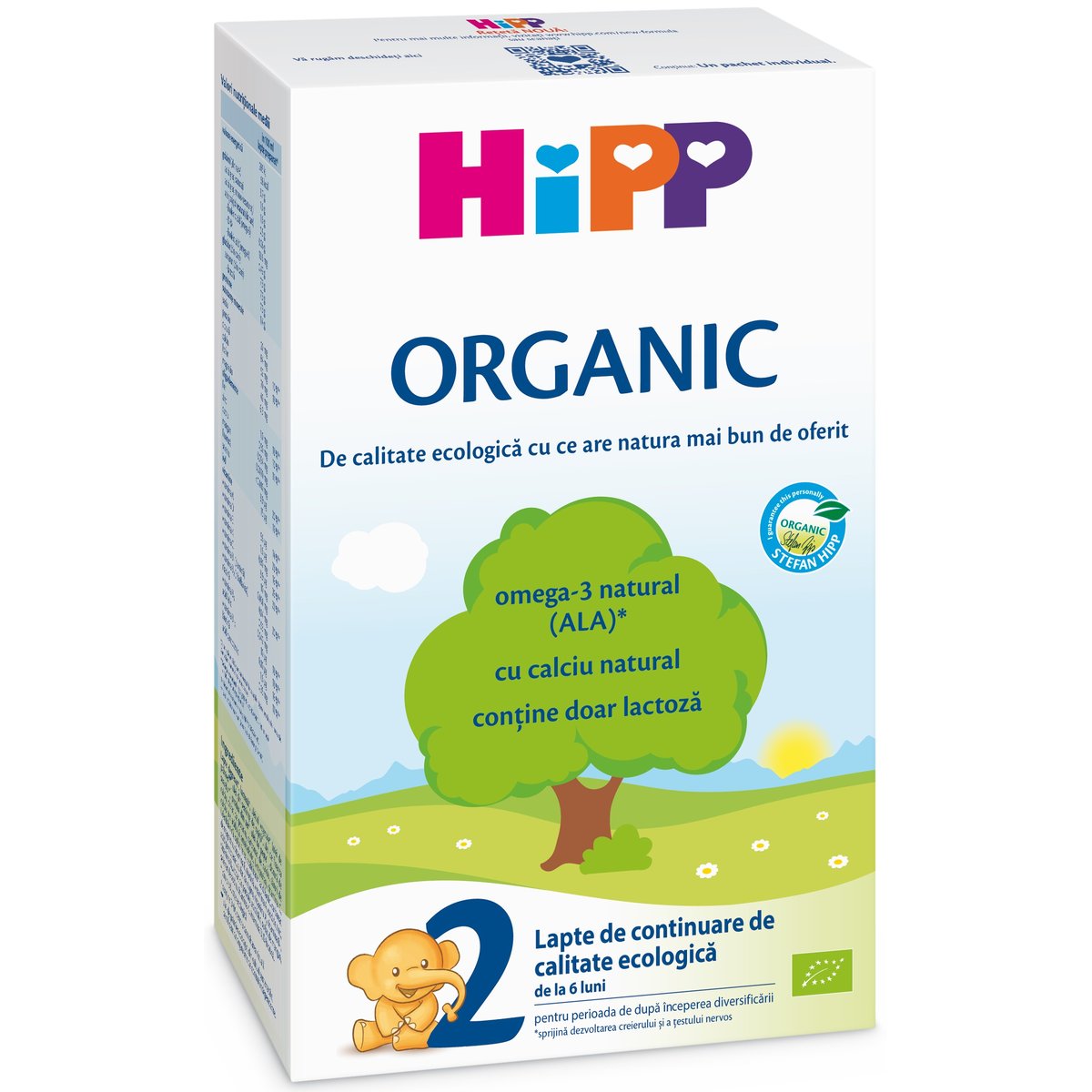 HiPP 2 ORGANIC Lapte de continuare ecologic (300g), de la 6 luni, cu cele mai bune ingrediente pe care le ofera natura.De peste 50 de ani, am concentrat intreaga noastra preocupare si experienta pentru producerea formulelor de lapte. Fiind pioneri in productia ecologica, am crezut cu tarie, de decenii, in utilizarea celor mai bune ingrediente ecologice pentru formulele de lapte. Suntem convinsi ca pentru perioada de dupa inceperea diversificarii, formulele HiPP ORGANIC aduc o contributie importanta dezvoltarii copilului dumneavoastra, dupa alaptare.Pentru a sprijini sanatatea copilului dumneavoastra, HiPP 2 ORGANIC contine:- acizi grasi naturali omega-3 (ALA) din ingrediente ecologice: contribuie la dezvoltarea creierului si a celulelor nervoase. Organismul nu poate produce acesti acizi grasi esentiali, insa acestia sprijina dezvoltarea sanatoasa a copilului dumneavoastra. - DHA: contribuie la dezvoltarea vizuala a copiilor si apartine grupului de acizi grasi omega-3. Un efect pozitiv poate fi observat pentru un aport zilnic de 100 mg DHA.- calciu natural: este un nutrient important ce contribuie la dezvoltarea normala a oaselor. Suplimentar, pe lânga calciu valoros din lapte, HiPP 2 ORGANIC contine carbonat de calciu, din surse minerale naturale, ce sprijina dezvoltarea oaselor sanatoase.- nutrienti valorosi pentru crestere si dezvoltare: HiPP 2 ORGANIC ofera copilului cantitatile necesare de nutrienti, in completarea hranei solide.UtilizareFoarte important! Laptele matern este cea mai buna hrana pentru copilul tau. Se recomanda alaptarea exclusivacu lapte matern pentru sugarii cu vârsta de pâna la 6 luni. Acest produs trebuie utilizat numai la indicatia mediculuisau a asistentului medical si dupa instruirea mamei privind utilizarea lui.HiPP 2 Organic este realizat pentru a corespunde nevoilor nutritionale specifice ale copiilor, de la 6 luni, si pentru asustine dezvoltarea lor sanatoasa.• dupa alaptare• dupa oricare formula de lapte de inceputHiPP 2 Organic poate fi folosit dupa oricare formula de lapte de continuare.Ghid de preparare (Produs instant)Va rugam respectati instructiunile de preparare si de utilizare intocmai! Prepararea, depozitarea si utilizarea necorespunzatoare a produsului pot afecta sanatatea copilului dumneavoastra. Prepararea incorecta sau depozitarea laptelui preparat in biberon pentru o perioada mai mare de timp pot fi daunatoare sanatatii, pentru ca, de exemplu, se pot dezvolta bacterii nedorite. Din acest motiv, intotdeauna preparati o masa proaspata si hraniti copilul imediat. Nu folositi cantitatea ramasa de la o masa la alta. Curatati bine sticla de biberon, tetina si inelul. inchideti bine pachetul dupa fiecare utilizare, depozitati-l intr-un loc uscat la temperatura camerei si folositi continutul in termen de 3 saptamâni.Va rugam nu incalziti laptele in cuptorul cu microunde (risc de arsuri!).Fierbeti apa proaspata si raciti-o pâna la aprox. 40-50 °C.Turnati cantitatea necesara de apa (vedeti ghidul de dozare), fiarta anterior, in biberon.Umpleti masura dozatoare cu cantitatea necesara de pudra (vedeti ghidul de dozare) si inlaturati surplusul.Adaugati pudra in biberonul cu apa.inchideti sticla si agitati bine.Raciti biberonul pâna la temperatura de baut (aprox. 37 °C) – verificati temperatura.