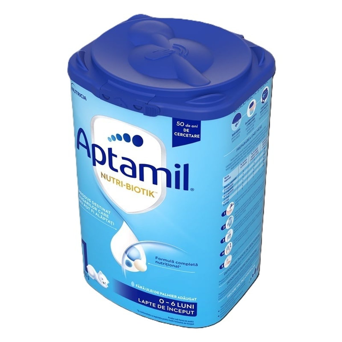 De 50 de ani, echipa noastra de oameni de stiinta se dedica cercetarii nutritiei primilor ani de viata pentru a intelege cum putem sustine mai bine dezvoltarea copilului tau. FORMULA NOASTRA COMPLETA NUTRITIONAL* pentru sugarii care nu pot fi alaptati Cercetarile noastre ne-au inspirat sa dezvoltam o formula special conceputa pentru a sustine nevoile nutritionale ale bebelusului tau. Produs in ambalaj prietenos cu mediul: • Fabrica noastra foloseste energie electrica provenind din surse 100% regenerabile, • Ambalajul nostru este creat partial din materiale regenerabile pe baza de plante. Ingrediente: Lactoza (din lapte de vaca), uleiuri vegetale (ulei de floarea soarelui bogat in acid oleic, ulei de cocos, ulei de rapita, ulei de floarea soarelui), lapte de vaca degresat, zer demineralizat (din lapte de vaca), galactooligozaharide (din lapte de vaca), concentrat din zer (din lapte de vaca), proteina din lapte de vaca, fructooligozaharide, ulei de peste, citrat de potasiu, carbonat de calciu, ulei din Mortierella alpina, clorura de magneziu, clorura de colina, fosfat tricalcic, citrat de sodiu, clorura de potasiu, clorura de sodiu, acid L-ascorbic, emulsifiant (lecitine (soia)), inozitol, L-triptofan, L-ascorbat de sodiu, sulfat feros, sulfat de zinc, L-carnitina, antioxidant (ascorbil palmitat), D-pantotenat de calciu, nicotinamida, sulfat de cupru, DL-alfa-tocoferil acetat, retinil palmitat, hidroclorura de tiamina, riboflavina, hidroclorura de piridoxina, iodura de potasiu, acid pteroilmonoglutamic, fitomenadiona, selenit de sodiu, sulfat de mangan, colecalciferol, D-biotina, cianocobalamina. Declaratie nutritionala: La 100 g pudra La 100 ml produs reconstituit (13,7 g pudra) Valoare energetica (kj/kcal) 2016/482 276/66 Grasimi (g) 24.6 3.4 din care acizi grasi saturati (g) 8.0 1,1 din care acizi grasi mononesaturati (g): 12.4 1.7 din care acizi grasi polinesaturati (g): 4.2 0.6 Acid arahidonic (AA) (g) 0.12 0.0165 Acid docosahexaenoic(DHA) (g) 0,12 0,0165 OMEGA 6 Acid linoleic LA (g) 3.3 0.456 OMEGA 3 Acid alfa-linolenic ALA (g) 0,40 0,0547 Glucide (g) 53.5 7.3 din care zaharuri (g) 52.7 7.2 lactoza (g) 50.8 6.96 Polioli Inozitol (mg) 53 7.2 Fibre (g) 4.2 0.6 Galactooligozaharide(GOS) 3.5 0.48 Fructooligozaharide(FOS) 0.58 0,08 3’Galactozillactoza(3’GL) 0.11 0.015 Proteine (g) 9.7 1,3 Vitamine si minerale Vitamina A (µg)-RE 422 58 Vitamina D (µg) 11 1.45 Vitamina E* (mg) 8.8 1.2 Vitamina K (µg) 41 5.6 Vitamina C (mg) 60 8.2 Tiamina (mg) 0.48 0.07 Riboflavina B2* (mg) 0,99 0,14 Niacina (mg) 3.1 0.43 Vitamina B6 (mg) 0.403 0.055 Folat (µg) 98 13 Vitamina B12 (µg) 1,2 0,6 Biotina (µg) 13 1.8 Acit pantotenic (mg) 3.834 0.525 Sodiu (mg) 162 22.1 Potasiu (mg) 609 83 Clorura (mg) 403 55 Calciu (mg) 426 58 Fosfor* (mg) 243 33 Magneziu (mg) 48 6.6 Fier (mg) 3.9 0.53 Zinc (mg) 3.5 0.48 Cupru (mg) 0.365 0.050 Mangan (mg) 0.024 0.003 Fluorura* (mg) 0.043 0.0059 Seleniu (µg) 18 2.5 Iod (µg) 92 13 Alte substante L-carnitina (mg) 15 2.0 Colina (mg) 156 21 Taurina (mg) 0.94 0.13 Carbohidrati non-calorici (GOS) g 1.7 0,2 *pot aparea variatii naturale în materia prima Mod de preparare: 1. Spala-te bine pe maini, sterilizeaza toate ustensilele utilizate in prepararea laptelui si asigura-te ca marginea ambalajului este curata. 2. Fierbe apa potabila pentru prepararea laptelui timp de 5 minute, apoi lasa la racit pana la cca 40°C. Toarna in recipientul pregatit (biberon) cantitatea de apa fiarta si racita, necesara conform dozarii pentru o masa. 3. Dozeaza pudra cu lingurita din capacul ambalajului, nivelata cu ajutorul marginii din interiorul cutiei. Adauga pudra conform tabelului de dozare in recipientul pregatit (biberon). 4. Inchide recipientul si agita vertical si viguros timp de 10 secunde. Este foarte important sa respecti modalitatea si timpul de agitare pentru a dizolva corect pudra. 5. Verifica pe incheietura mainii tale temperatura laptelui preparat (cca 37°C). Foarte important: Laptele matern este cea mai buna hrana pentru copilul tau, astfel ca alaptarea trebuie sa dureze o perioada cat mai indelungata. Se recomanda alaptarea exclusiva cu lapte matern pentru sugarii cu varsta de pana la 6 luni. Se foloseste numai la indicatia si sub indrumarea medicului sau asistentului medical si numai dupa instruirea mamei privind utilizarea produsului. Mod de prezentare: 800g