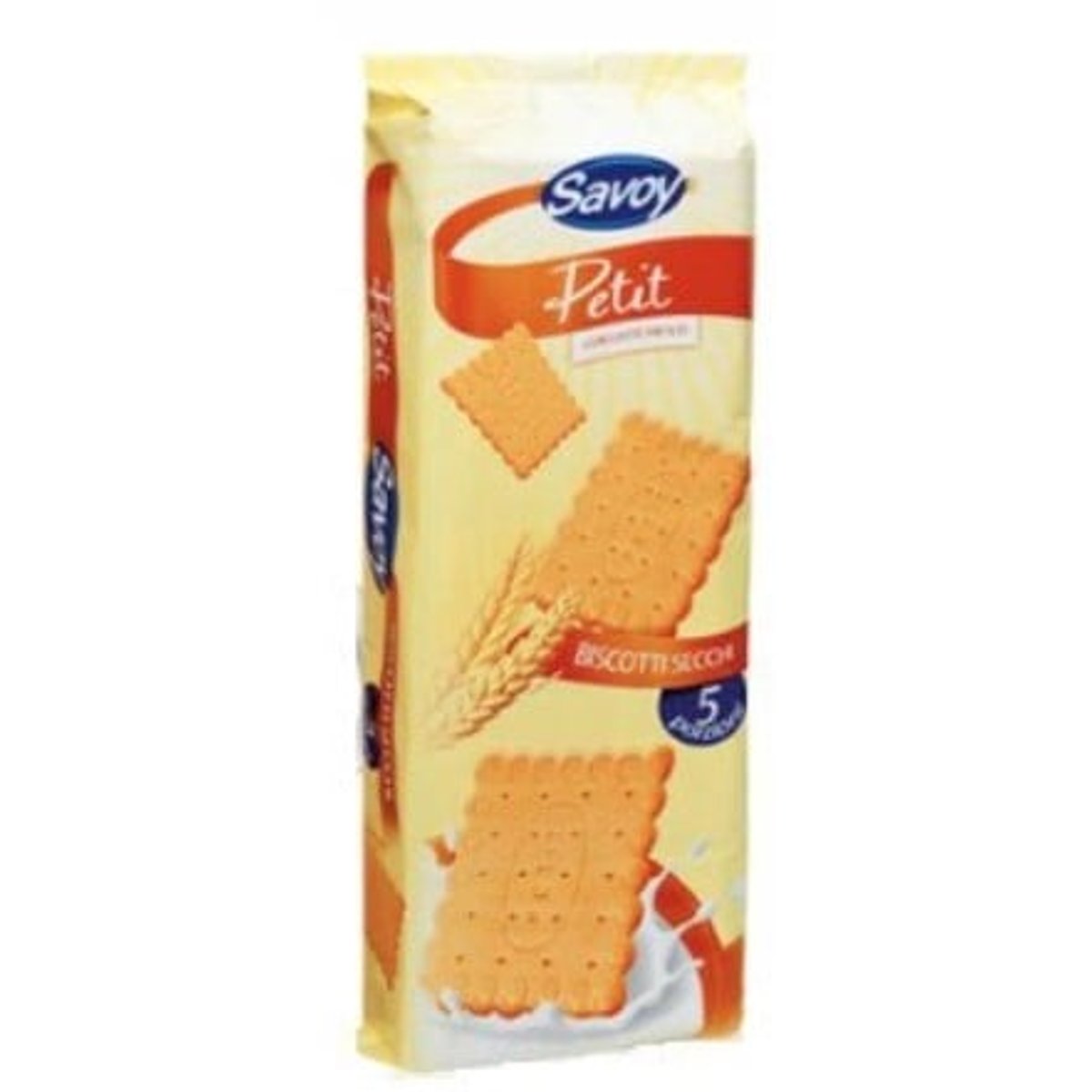 Biscuitii premium SAVOY PETIT, produsi in Italia, sunt fabricati din cele mai bune materii prime si ofera o gustare delicioasa, ideala pentru intreaga familie. Cu lapte proaspat pasteurizat, acesti biscuiti se remarca prin textura fina si gustul echilibrat.Produs premium fabricat in Italia, cu lapte proaspat pasteurizat (8,5%).Valori nutritionale (per 100g):Valoare energetica: 437 kcalProteine: 7,2 gCarbohidrati: 77 g, din care zaharuri: 18 gGrasimi: 10,6 g, din care saturate: 5 gFibre alimentare: 25 gSare: 0,16 gBiscuiti crocanti, ideali pentru a fi savurati in orice moment al zilei.Ambalaj practic cu 5 pachetele individuale pentru prospetime.A se pastra intr-un loc racoros si uscat, departe de sursele de caldura. A se consuma inainte de data inscrisa pe ambalaj.Conform instructiunilor de pe pachet