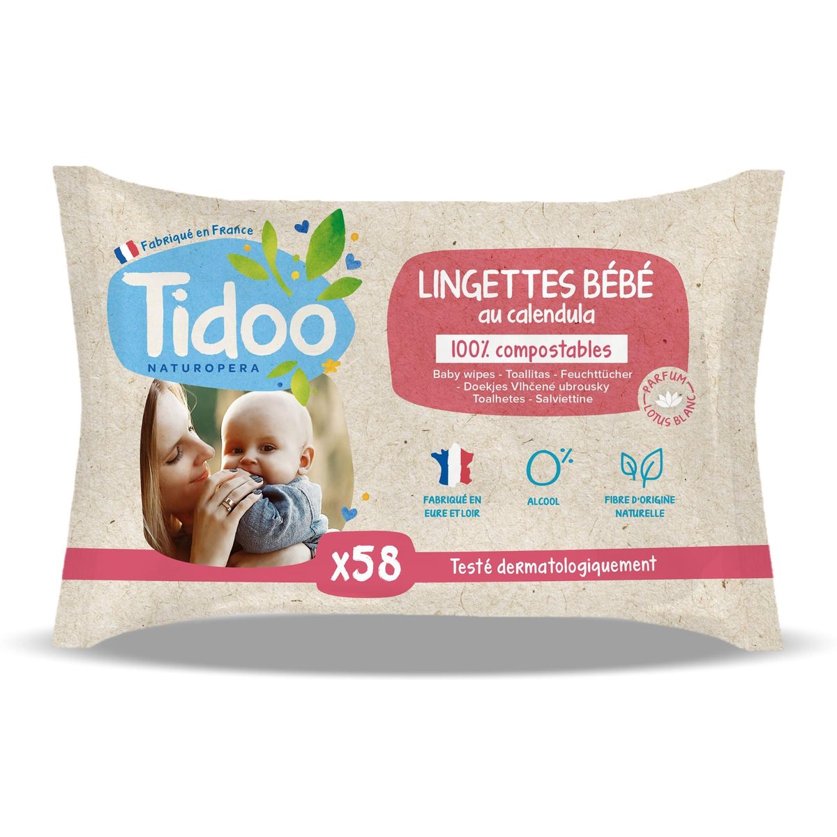 Tidoo este un brand frantuzesc a carui scop principal este protejarea sanatatii pielii bebelusului si grija pentru mediul inconjurator. Inca de la inceput, Tidoo a facut eforturi considerabile pentru a pune ETICA in centrul principiilor sale, de unde si decizia de a produce exclusiv in Franta. Totodata, brandul Tidoo si-a propus sa ofere produse foarte calitative pentru a incuraja si sustine un consum responsabil.Aceste servetele organice pentru bebelusi sunt create pentru a oferi o curatare delicata si eficienta pielii micutului tau.Fabricate in regiunea Eur-et-Loire, aceste servetele sunt o alegere ideala pentru parintii care cauta produse simple si naturale. Cu o compozitie ce contine 98% ingrediente naturale, sunt moi si ultrarezistente, perfecte pentru curatarea scaunului, fetei si mainilor bebelusului. Formula organica, imbogatita cu extract de galbenele, este blanda si hranitoare pentru pielea sensibila a bebelusului, asigurand o ingrijire delicata si eficienta. ✓ Servetelele Tidoo sunt biodegradabile, iar fibra folosita este chiar compostabila.✓ Sunt extrem de practice si de utile atat acasa cat si in deplasare.Pentru a utiliza servetelele umede Tidoo, indeparteaza cu grija servetelele din ambalaj si aplica-le pe zona dorita a pielii bebelusului. Nu este necesara clatirea ulterioara.Asigura-te ca repozitionezi eticheta autoadeziva pe ambalajul original dupa utilizare, pentru a pastra servetelele proaspete si umede pentru urmatoarea utilizare.Se pastreaza intr-un loc uscat si racoros, ferit de razele soarelui, caldura, frig sau inghet. Pentru a utiliza servetelele umede Tidoo, indeparteaza cu grija servetelele din ambalaj si aplica-le pe zona dorita a pielii bebelusului. Nu este necesara clatirea ulterioara.Asigura-te ca repozitionezi eticheta autoadeziva pe ambalajul original dupa utilizare, pentru a pastra servetelele proaspete si umede pentru urmatoarea utilizare.