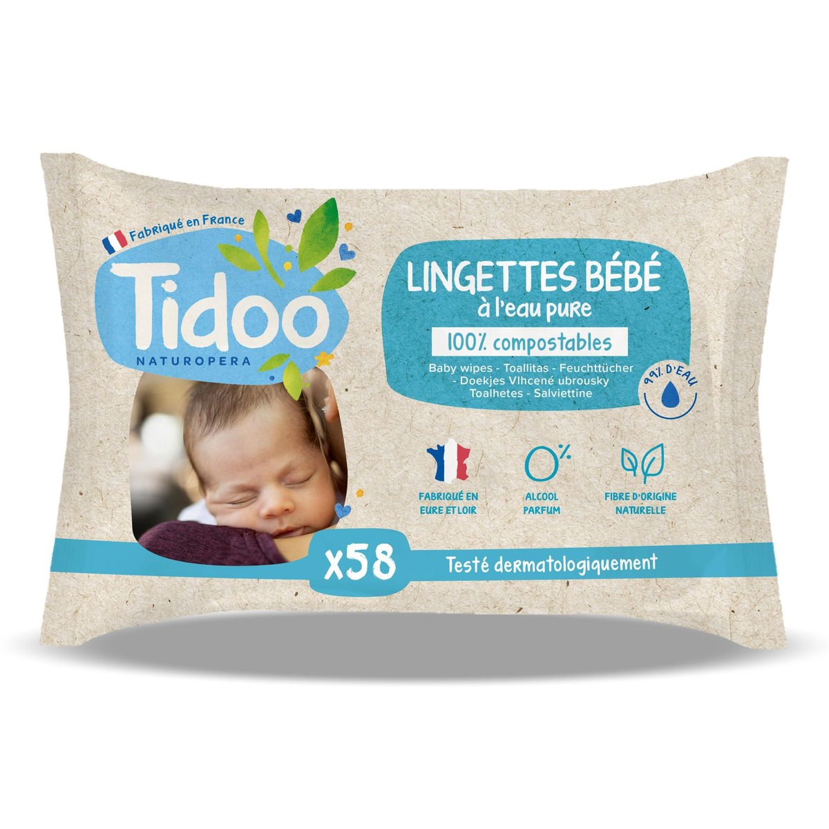 Tidoo este un brand frantuzesc a carui scop principal este protejarea sanatatii pielii bebelusului si grija pentru mediul inconjurator. Inca de la inceput, Tidoo a facut eforturi considerabile pentru a pune ETICA in centrul principiilor sale, de unde si decizia de a produce exclusiv in Franta. Totodata, brandul Tidoo si-a propus sa ofere produse foarte calitative pentru a incuraja si sustine un consum responsabil.Aceste servetele organice pentru bebelusi sunt create pentru a oferi o curatare delicata si eficienta pielii micutului tau.Fabricate in regiunea Eur-et-Loire, aceste servetele sunt o alegere ideala pentru parintii care cauta produse simple si naturale. Cu o compozitie ce contine 98% ingrediente naturale, sunt moi si ultrarezistente, perfecte pentru curatarea scaunului, fetei si mainilor bebelusului. Formula organica, imbogatita cu extract de galbenele, este blanda si hranitoare pentru pielea sensibila a bebelusului, asigurand o ingrijire delicata si eficienta. ✓ Servetelele Tidoo sunt biodegradabile, iar fibra folosita este chiar compostabila.✓ Sunt extrem de practice si de utile atat acasa cat si in deplasare.Pentru a utiliza servetelele umede Tidoo, indeparteaza cu grija servetelele din ambalaj si aplica-le pe zona dorita a pielii bebelusului. Nu este necesara clatirea ulterioara.Asigura-te ca repozitionezi eticheta autoadeziva pe ambalajul original dupa utilizare, pentru a pastra servetelele proaspete si umede pentru urmatoarea utilizare.Se pastreaza intr-un loc uscat si racoros, ferit de razele soarelui, caldura, frig sau inghet. Pentru a utiliza servetelele umede Tidoo, indeparteaza cu grija servetelele din ambalaj si aplica-le pe zona dorita a pielii bebelusului. Nu este necesara clatirea ulterioara.Asigura-te ca repozitionezi eticheta autoadeziva pe ambalajul original dupa utilizare, pentru a pastra servetelele proaspete si umede pentru urmatoarea utilizare.
