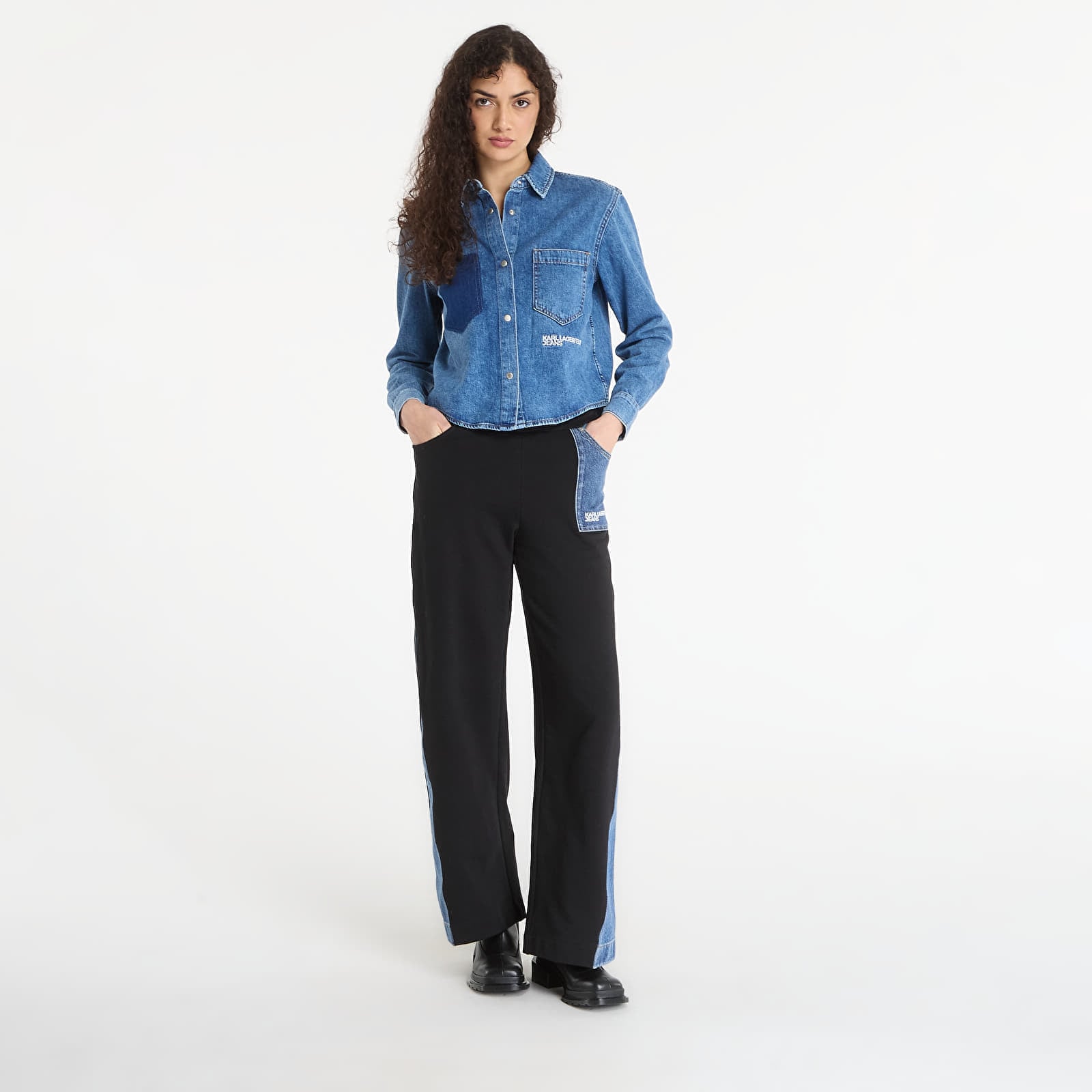 Pantaloni de trening Karl Lagerfeld Jeans Mixed Material Sweatpant Washed Blue/ Black L la preț atractiv de doar 839 lei. Producător: Karl Lagerfeld Jeans Mărime: L Culoare: Washed Blue/ Black