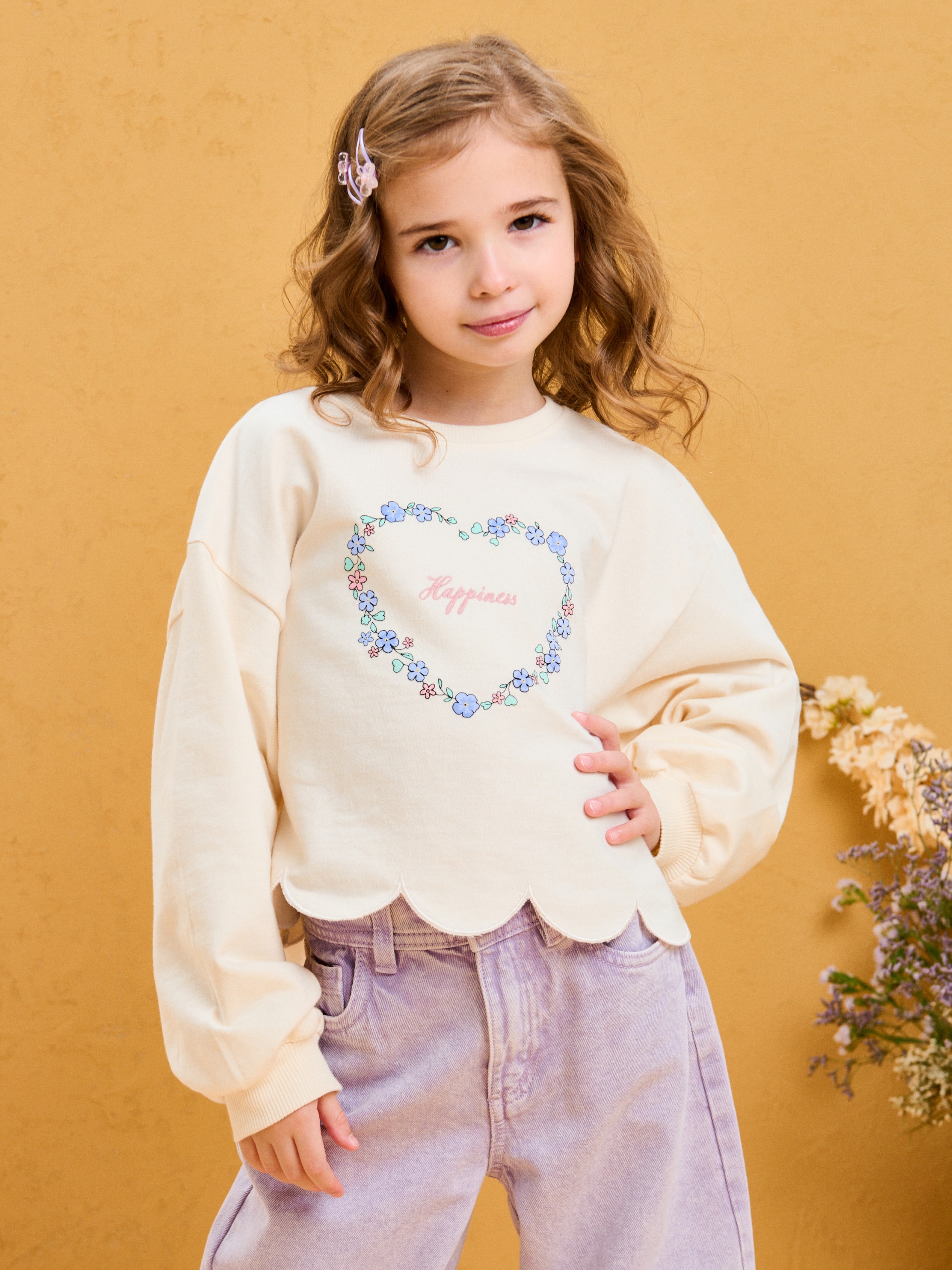 Sinsay - Hanorac din french terry cu broderie și finisaj decorativ - crem -