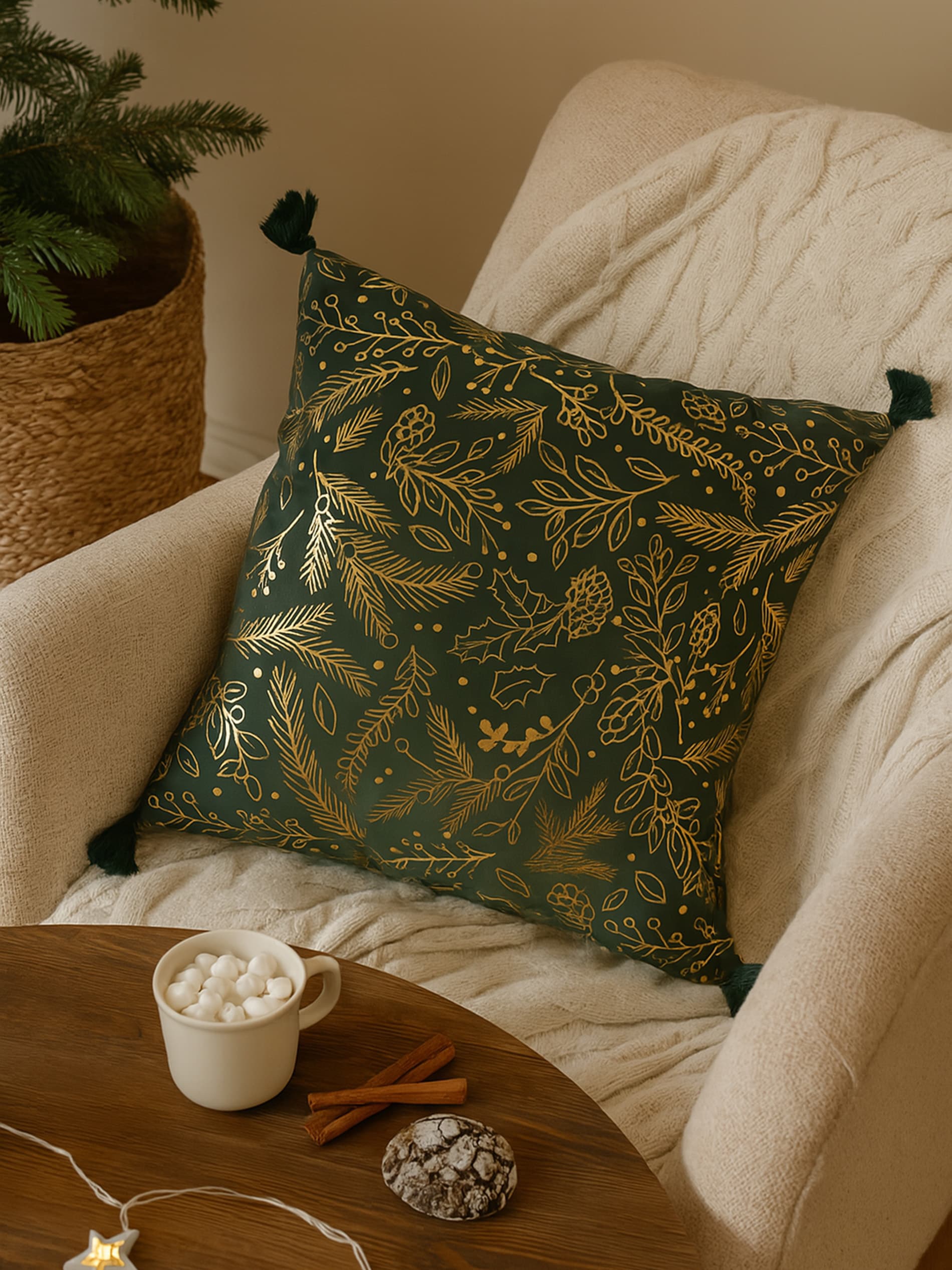 Sinsay - Pernă decorativă de Crăciun cu model vegetal auriu - multicolor