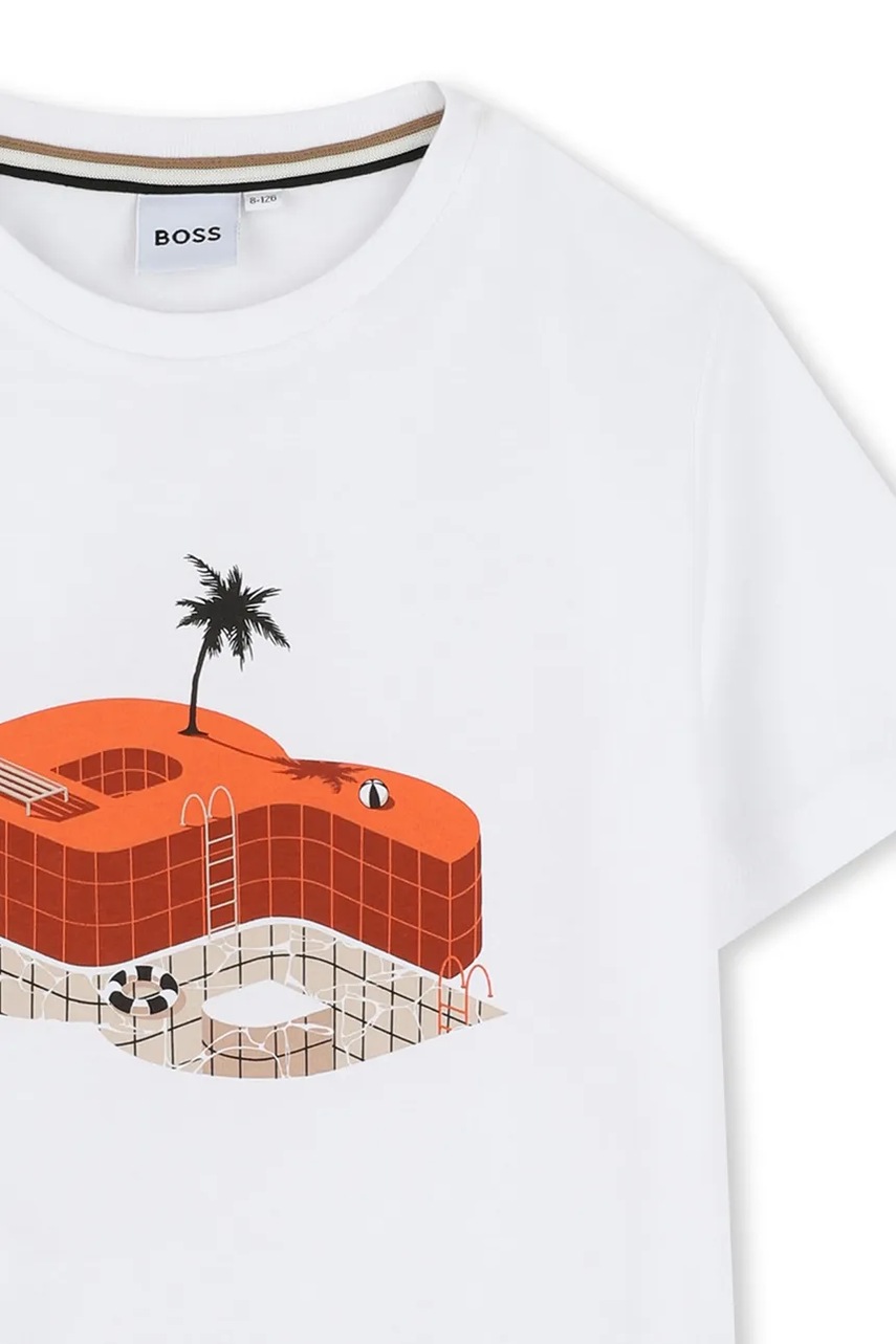 - BOSS tricouri polo din bumbac pentru copii culoarea alb, cu imprimeu