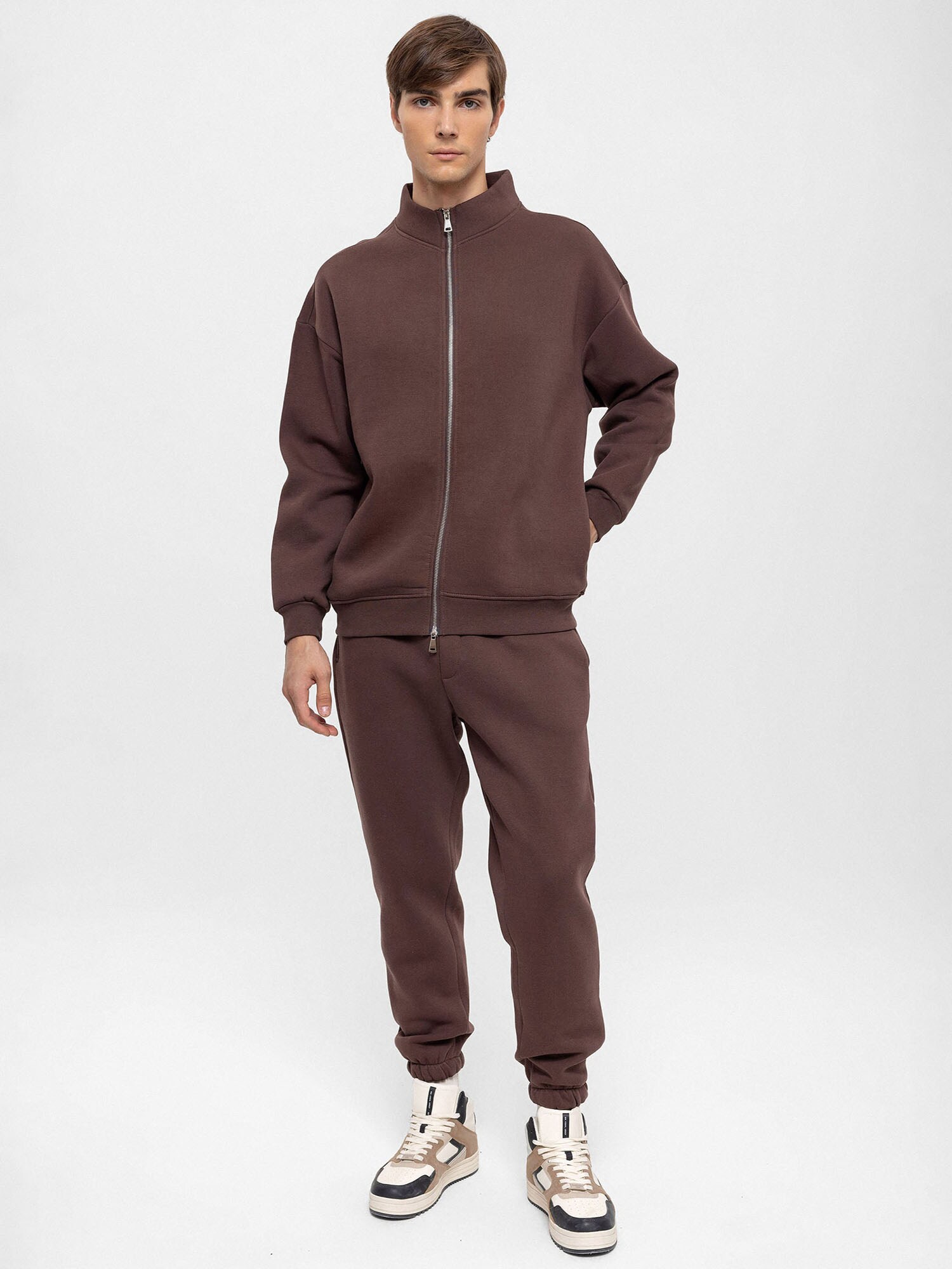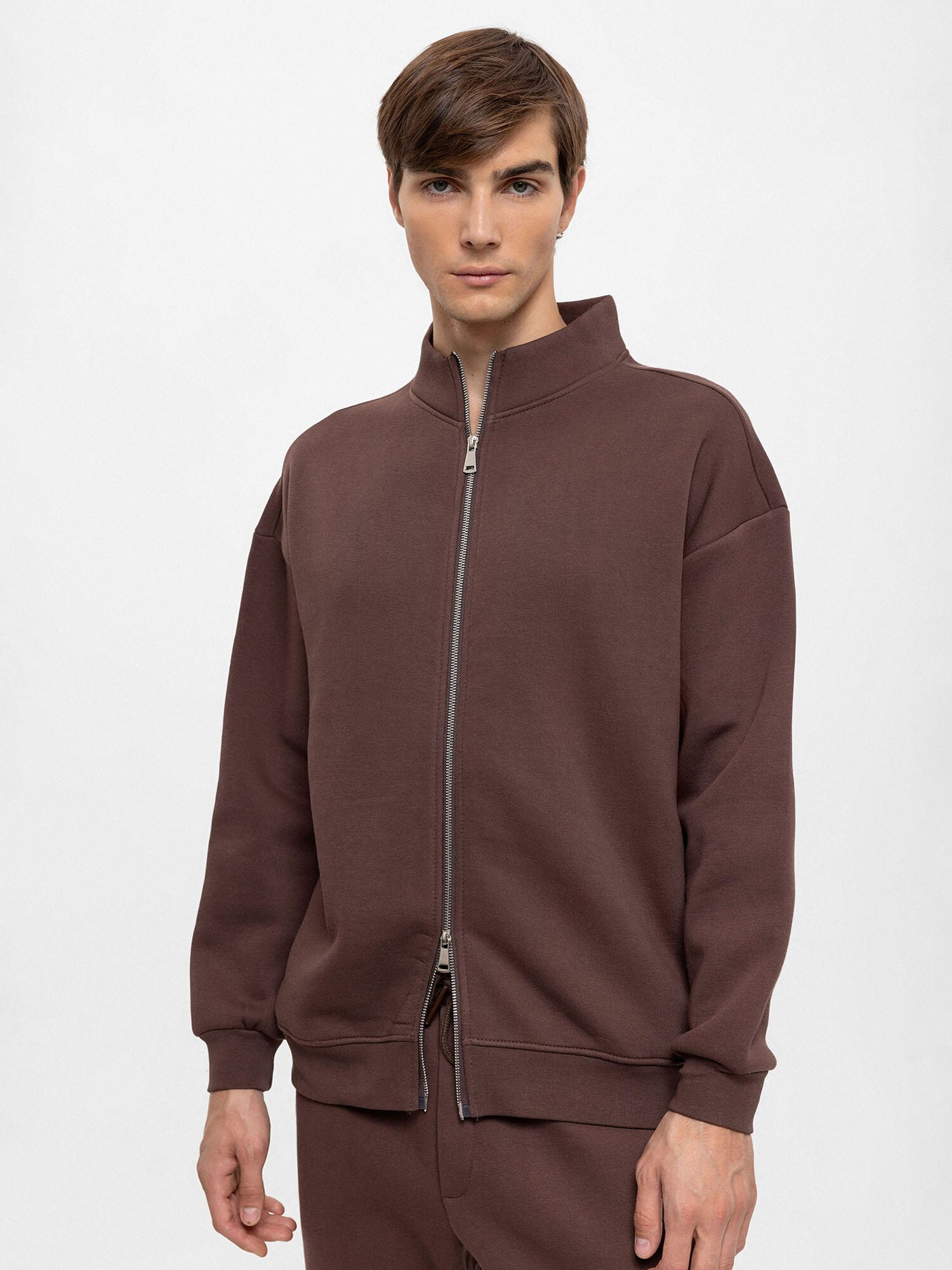 Design: Manșete cu striații, Fermoar cu două căi; Tip de închidere: Fermoar; Material: Material sweat; Decolteu: Guler tunică; Imprimeu: Monocrom; Detalii: Material moale; Croi: Croi normal; Lungime mâneci: Mâncecă lungă