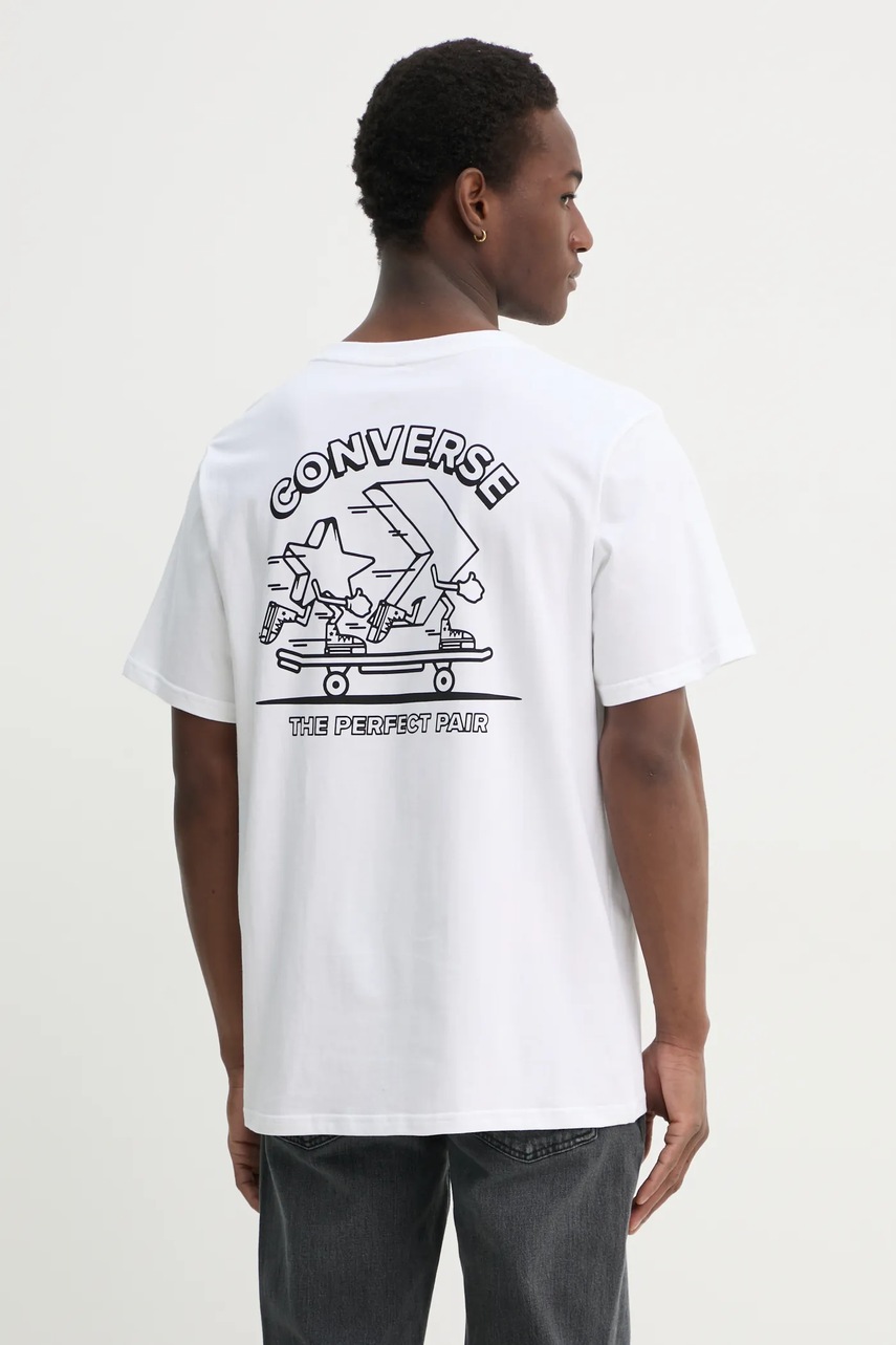 Converse tricou din bumbac bărbați, culoarea bej, cu imprimeu, 10027195-A02