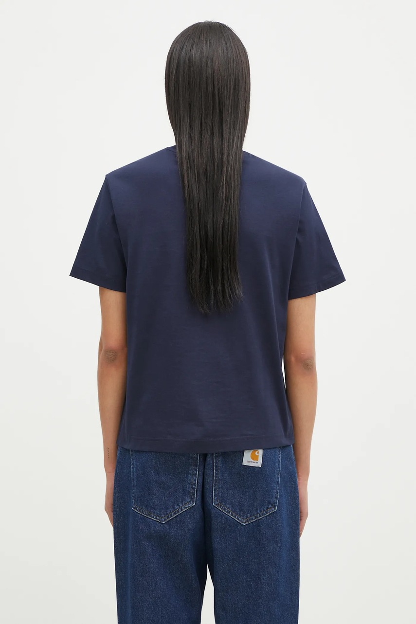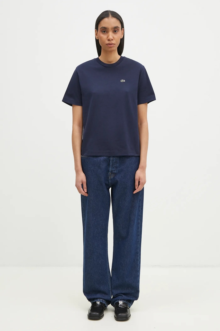 Lacoste tricou din bumbac femei, croială lejeră, decolteu rotund, mânecă scurtă, logo brodat pe față, albastru marin, mărimea 36