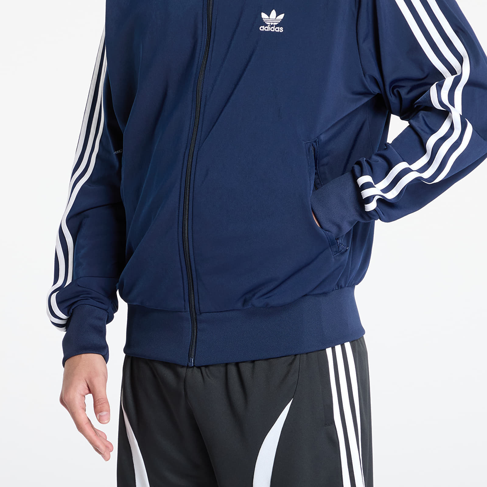 adidas Jachetă Track Adicolor Classics Firebird Night Indigo, 100% poliester reciclat, fermoar frontal, guler înalt, buzunare cu fermoar