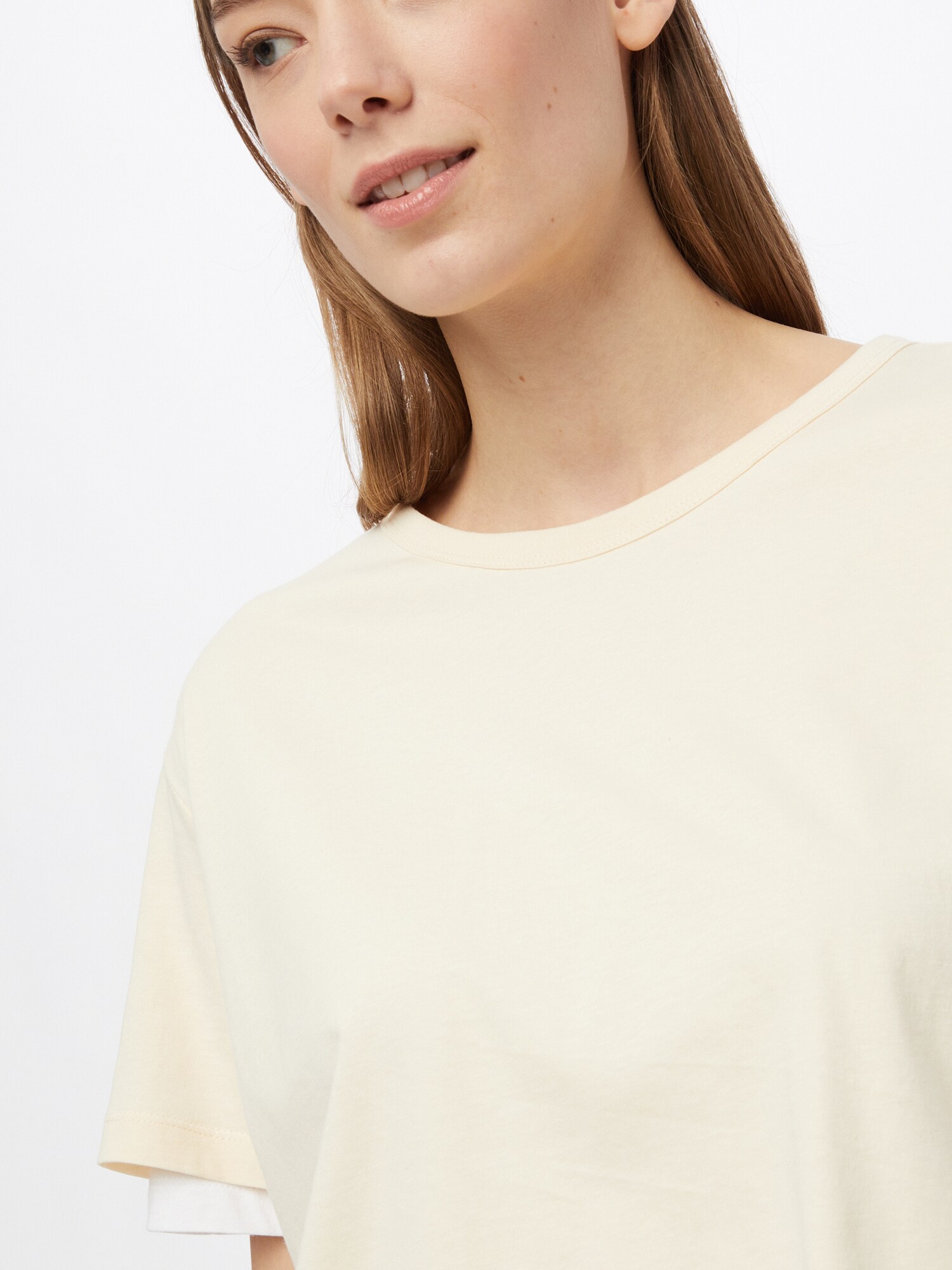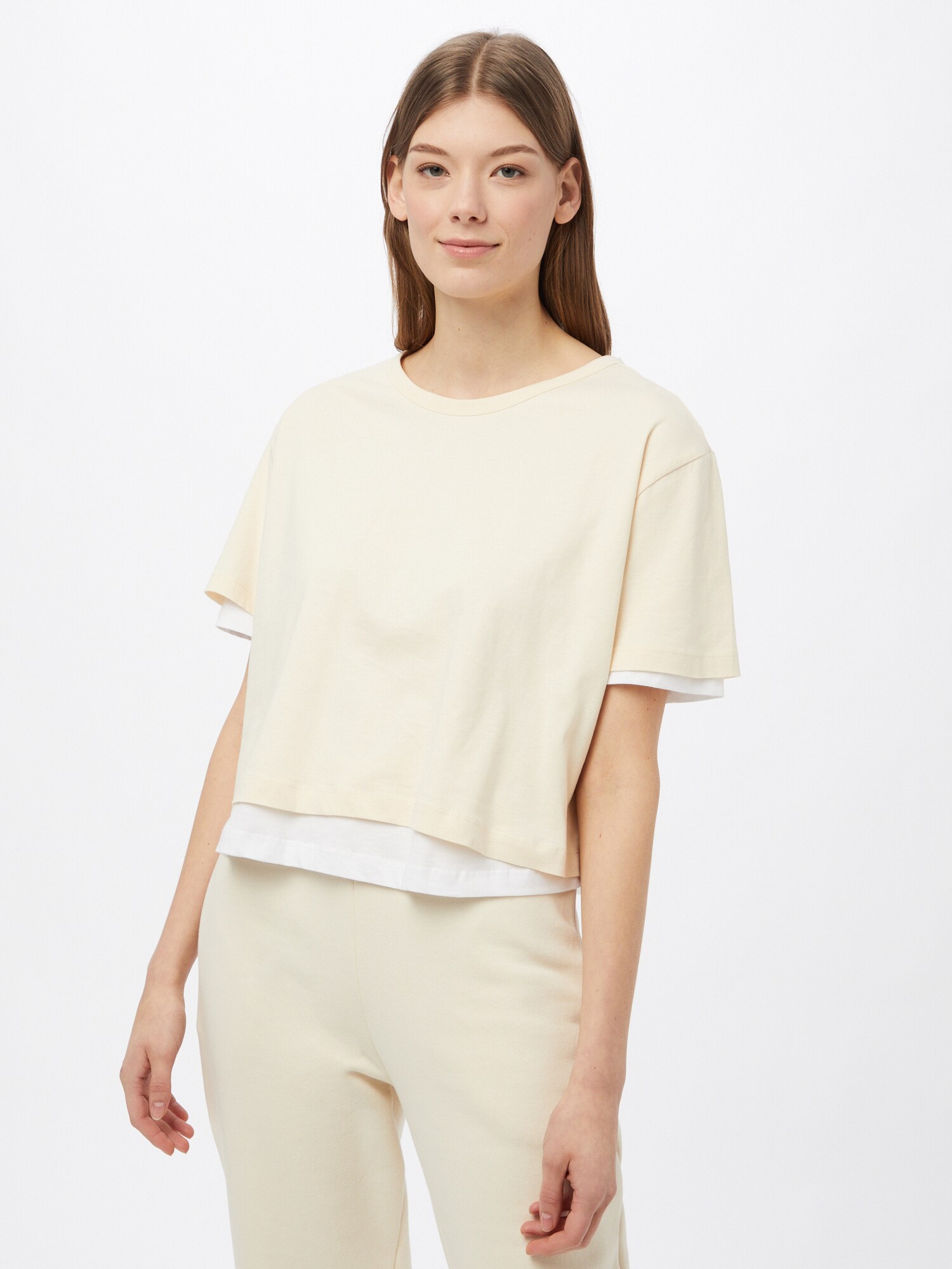 Design: Tiv/ margine tighelită, Tiv drept, Cu mai multe straturi, Decolteu cu tiv; Material: Jerseu, Bumbac; Decolteu: Decolteu rotund; Imprimeu: Monocrom; Detalii: Cusături ton în ton, Material moale; Croi: Croi normal; Lungime mâneci: Mâneci scurte; Lungime: Croi scurt