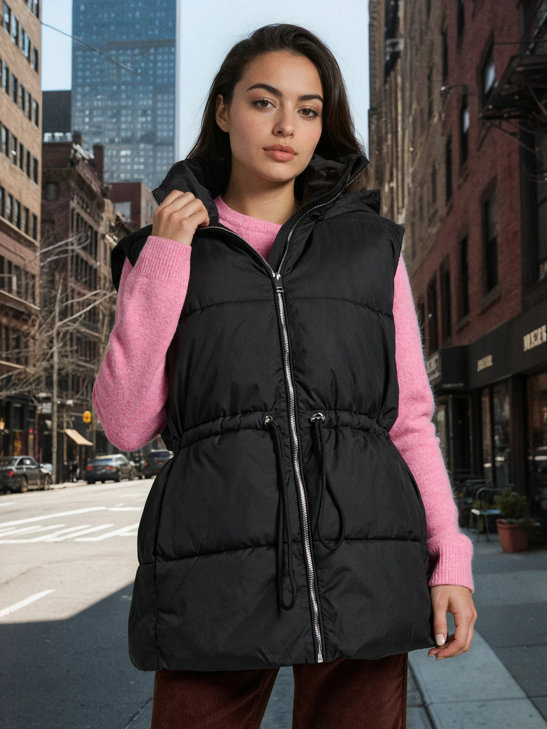 Sinsay - Vestă puffer matlasată cu glugă - negru