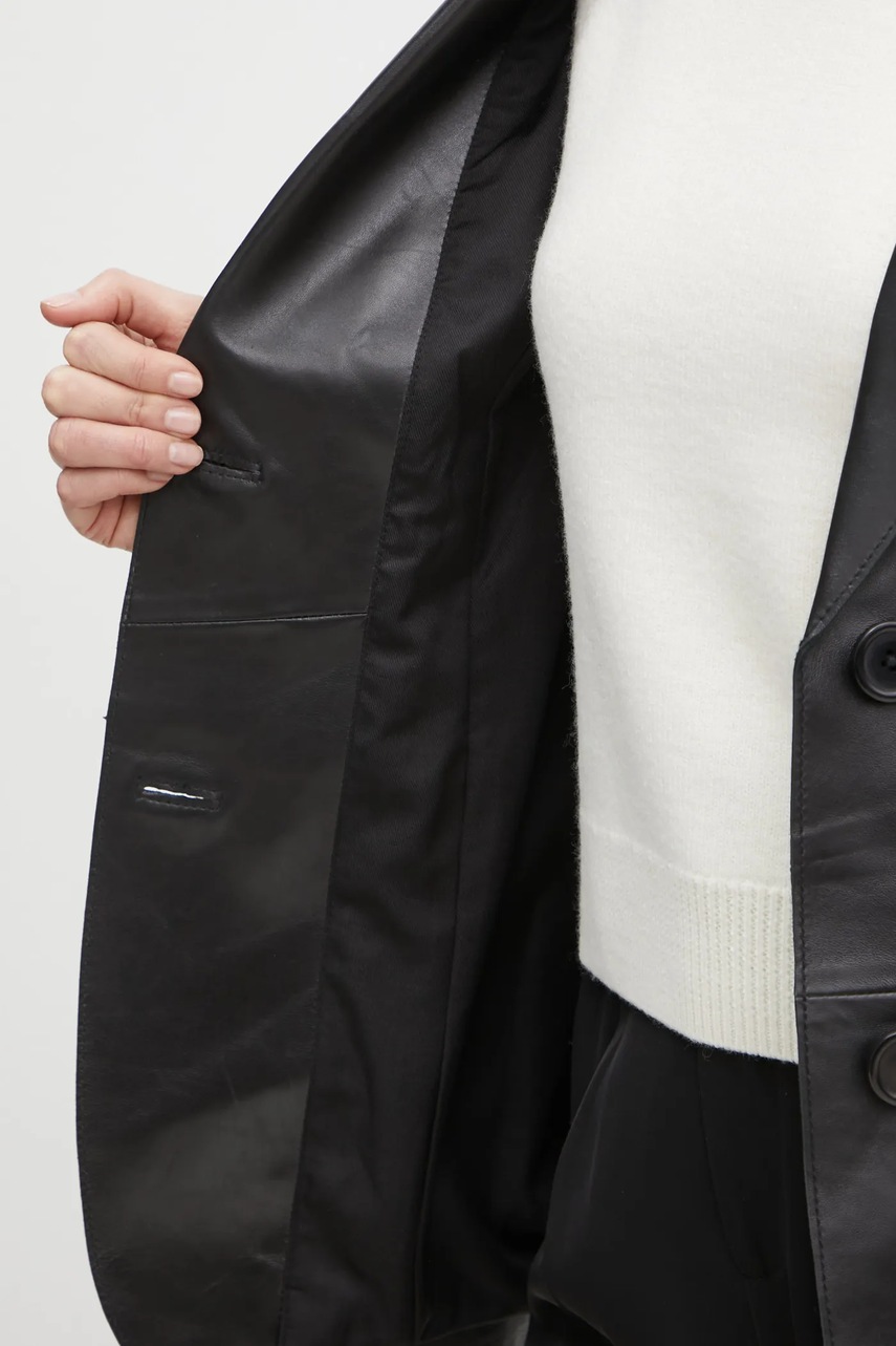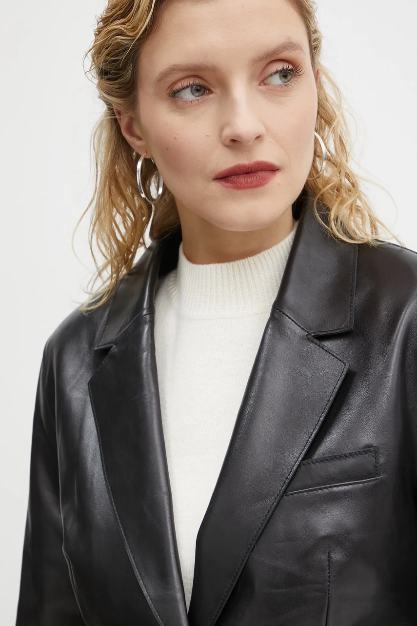 Îmbrăcați-vă în eleganță și rafinament cu sacoul de piele Mina de la Stand Studio, un must-have al garderobei dumneavoastră! Cu un design minimalist și un singur rând de nasturi, acest sacou neted vă va sublinia fiecare outfit, conferindu-i o notă sofisticată, dar și modernă. Închidere comodă cu buton, ușor de îmbrăcat și dezbrăcat, vă face să vă simțiți încrezător fără efort. Detaliile precum clapetele clasice și buzunarul la piept adaugă un strop de stil, iar buzunarele decorate cu clape sunt atât utile, cât și chic. Un buzunar interior suplimentar asigură că micile tale obiecte sunt mereu la îndemână și în siguranță. Cu o căptușeală confortabilă și perne cusute în umeri, fiecare purtare va fi o plăcere, asigurându-vă că sunteți îmbrăcat cu rafinament din cap până în picioare. Îndrăzniți să faceți o declarație de stil – adăugați sacoul Mina în colecția dumneavoastră și transformați fiecare zi într-o oportunitate de a străluci! Grăbiți-vă să-l achiziționați și să vă redefiniți stilul!